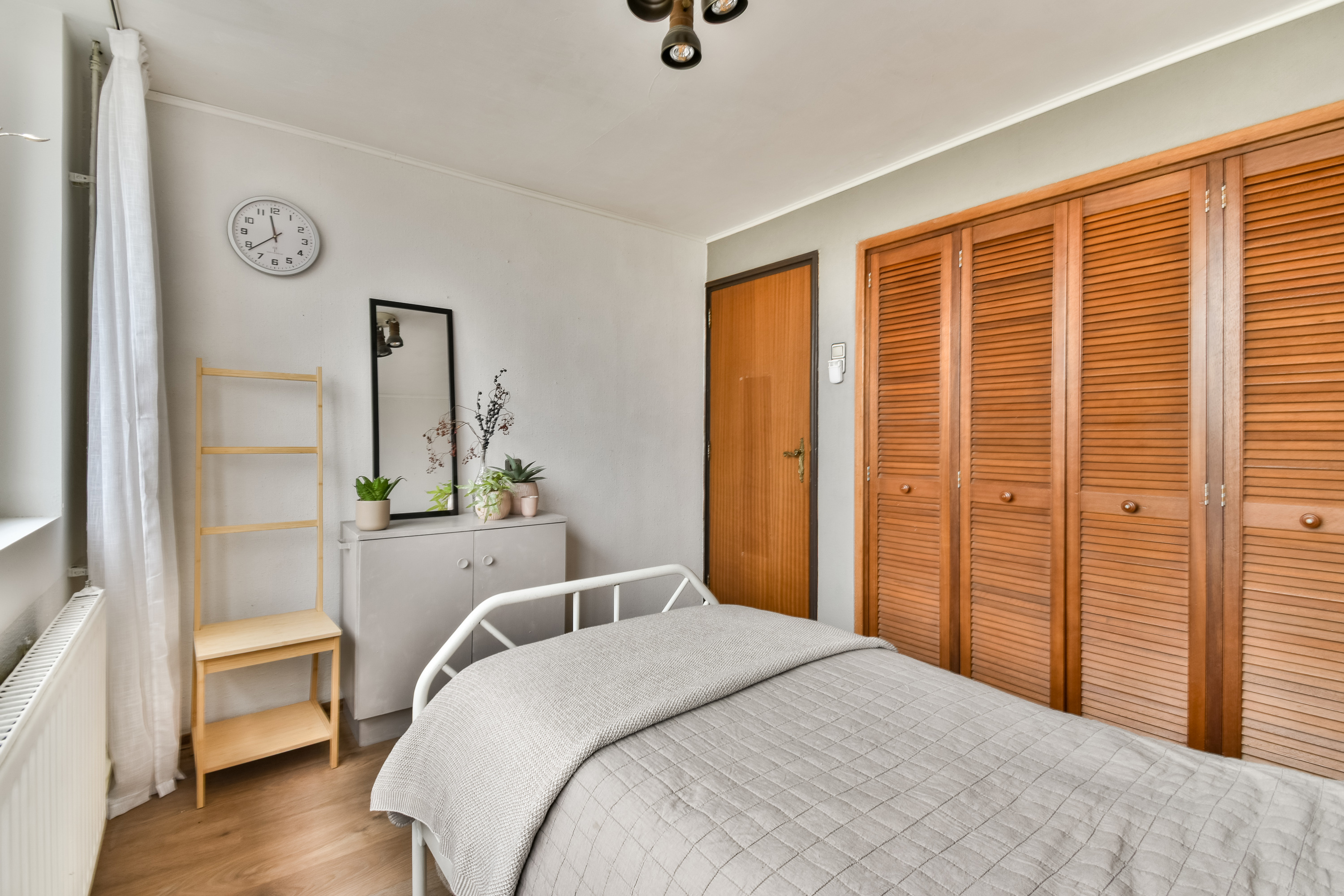Slaapkamer 2, gelegen aan de achterzijde, eveneens voorzien van vaste kasten.