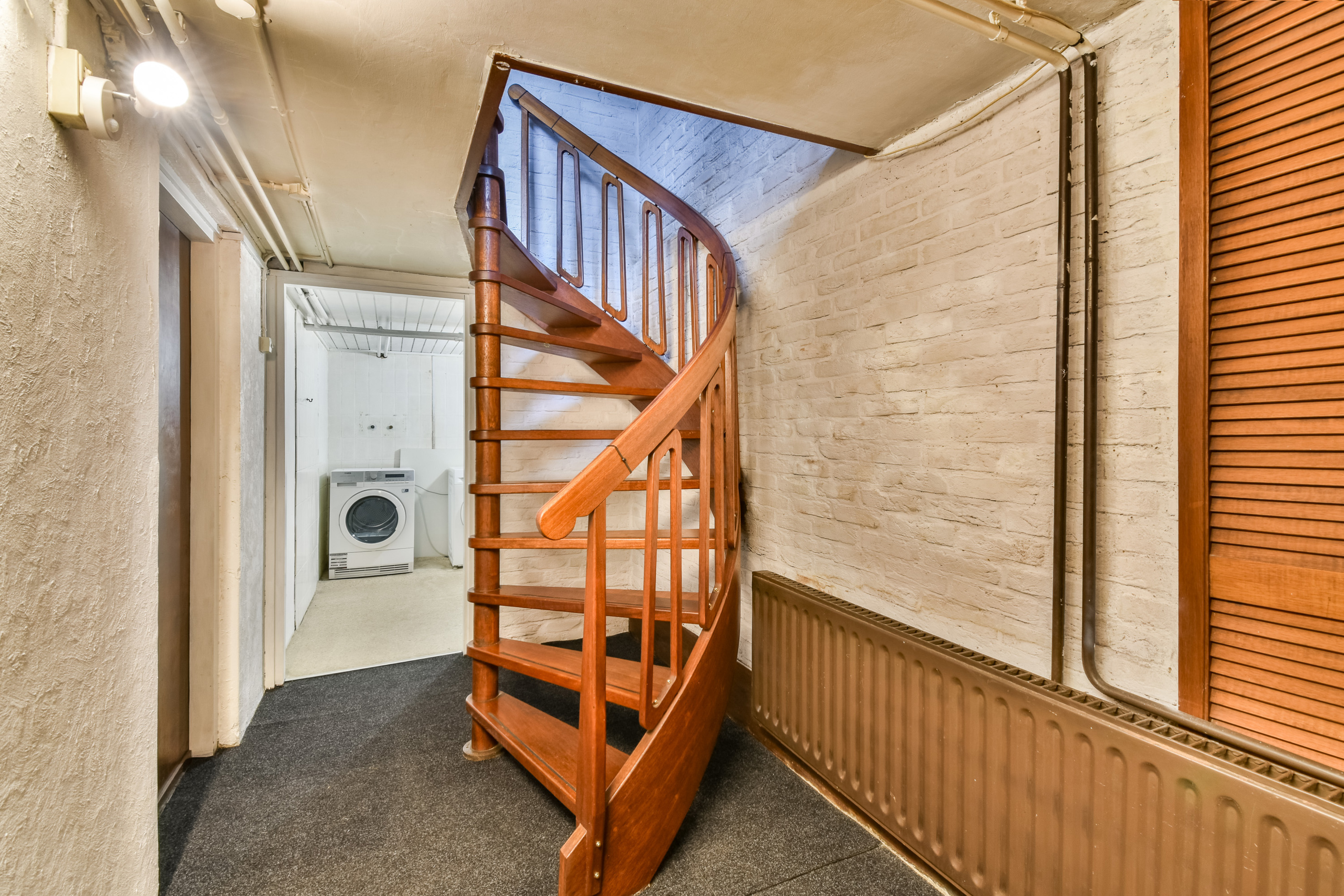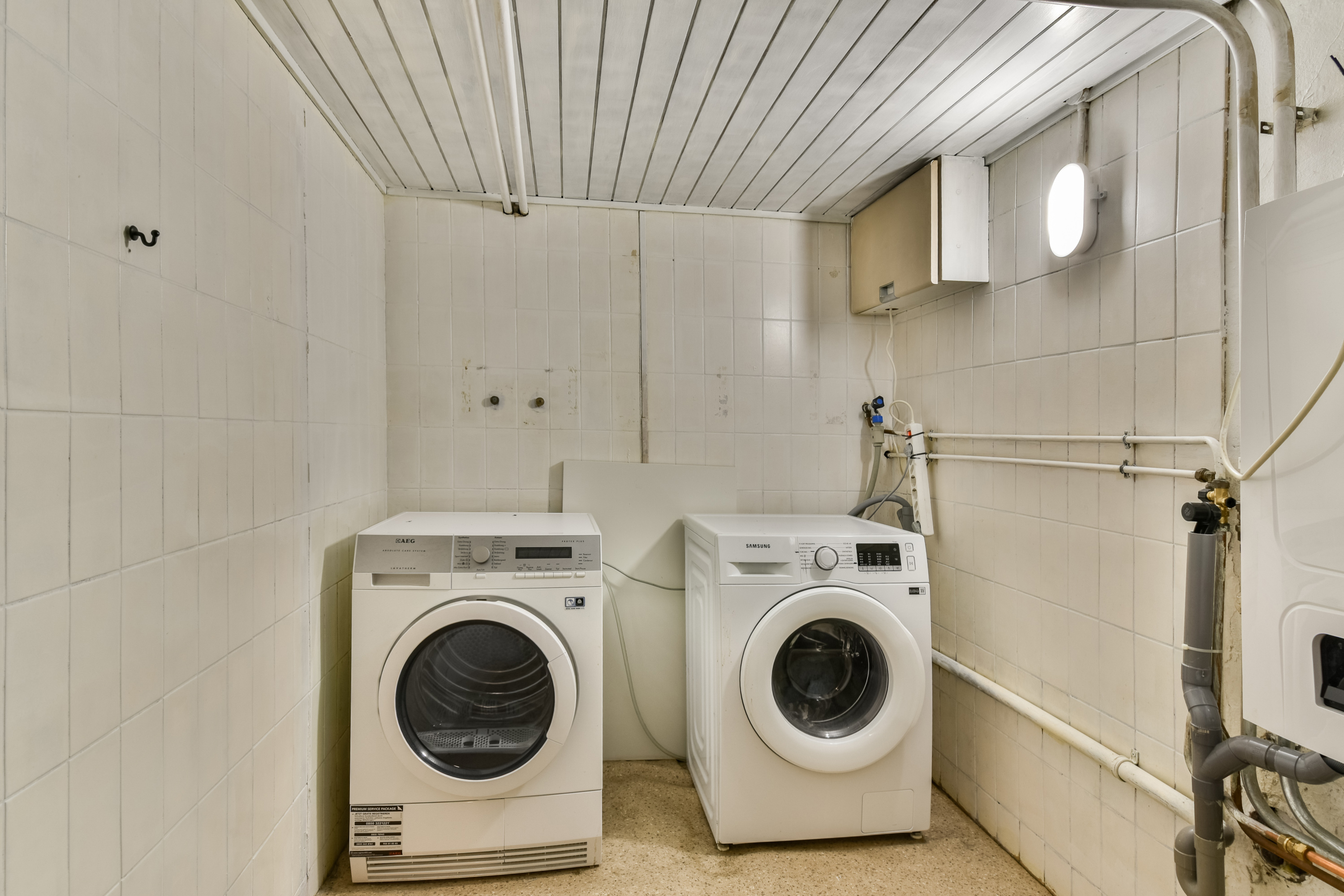 Ruime wasruimte met opstelplaats van de cv-ketel en aansluitingen voor de wasmachine en droger.