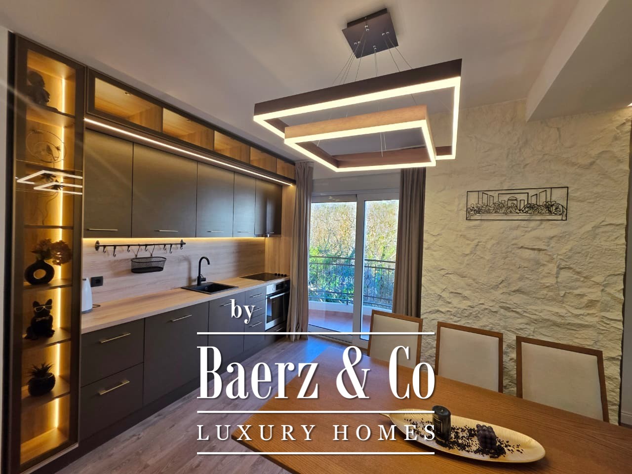 Het interieur kenmerkt zich door verlaagde plafonds en een surround-geluidssysteem in de woonruimte. De volledig uitgeruste keuken is direct gebruiksklaar en het appartement wordt compleet gemeubileerd aangeboden, waardoor directe bewoning of verhuur zonder extra investering mogelijk is. Appartement Budva, met de nabijheid van zee, restaurants en winkels, vormt een uitstekende gelegenheid voor zowel langdurig wonen als investering, ondersteund door de sterke huurvraag in de regio.
