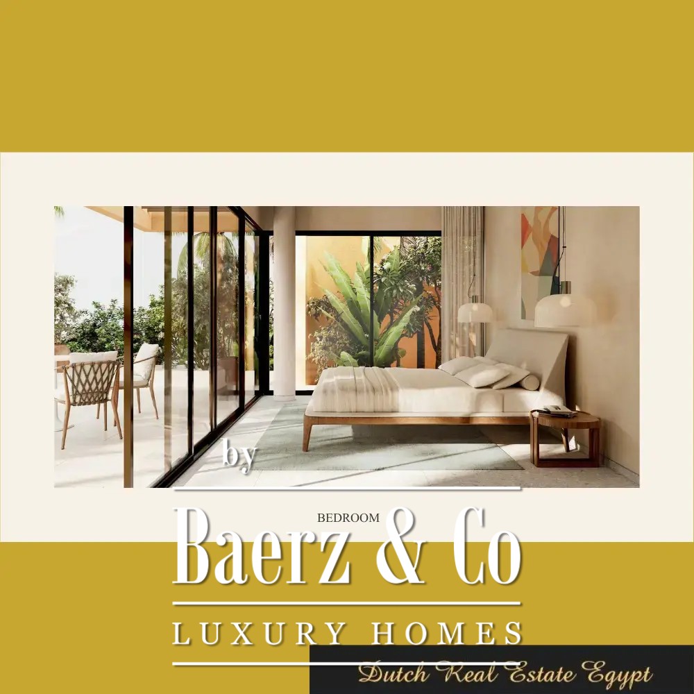 Riante raampartijen vangen het natuurlijke daglicht en verbinden de belangrijkste leefruimtes moeiteloos met buiten. Vanuit het balkon of het terras stapt u geleidelijk over naar de besloten tuin en het zwembad. Deze villa in El Gouna is samengesteld voor liefhebbers van ruimtelijke ritmiek, hoogwaardige materialen en de rust van zorgvuldig vormgegeven tuinen.