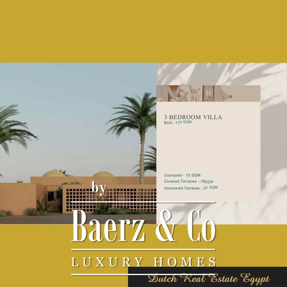 Deze villa in El Gouna biedt een zeldzame balans tussen serene luxe en hedendaags design. Met een woonoppervlakte van 177 m² beschikt deze woning over royale interieurs, gekenmerkt door ingetogen elegantie. De villa heeft drie slaapkamers en vier badkamers, waarbij elke ruimte is ontworpen met oog voor privacy en licht.