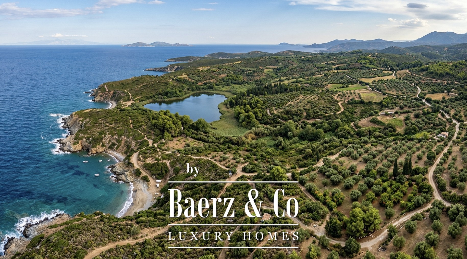 Het kustlandgoed Evia markeert een nieuw niveau van mogelijkheden voor de veeleisende investeerder. Dit bijzondere eigendom beslaat circa 5.000.000 m² grond op het eiland Evia, gekenmerkt door een onafgebroken privé-kustlijn van vier kilometer. Het perceel vormt een zelfvoorzienend domein, ingeklemd tussen twee bergkammen die een beschut gebied creëren en geleidelijk afdalen richting de Egeïsche Zee.
