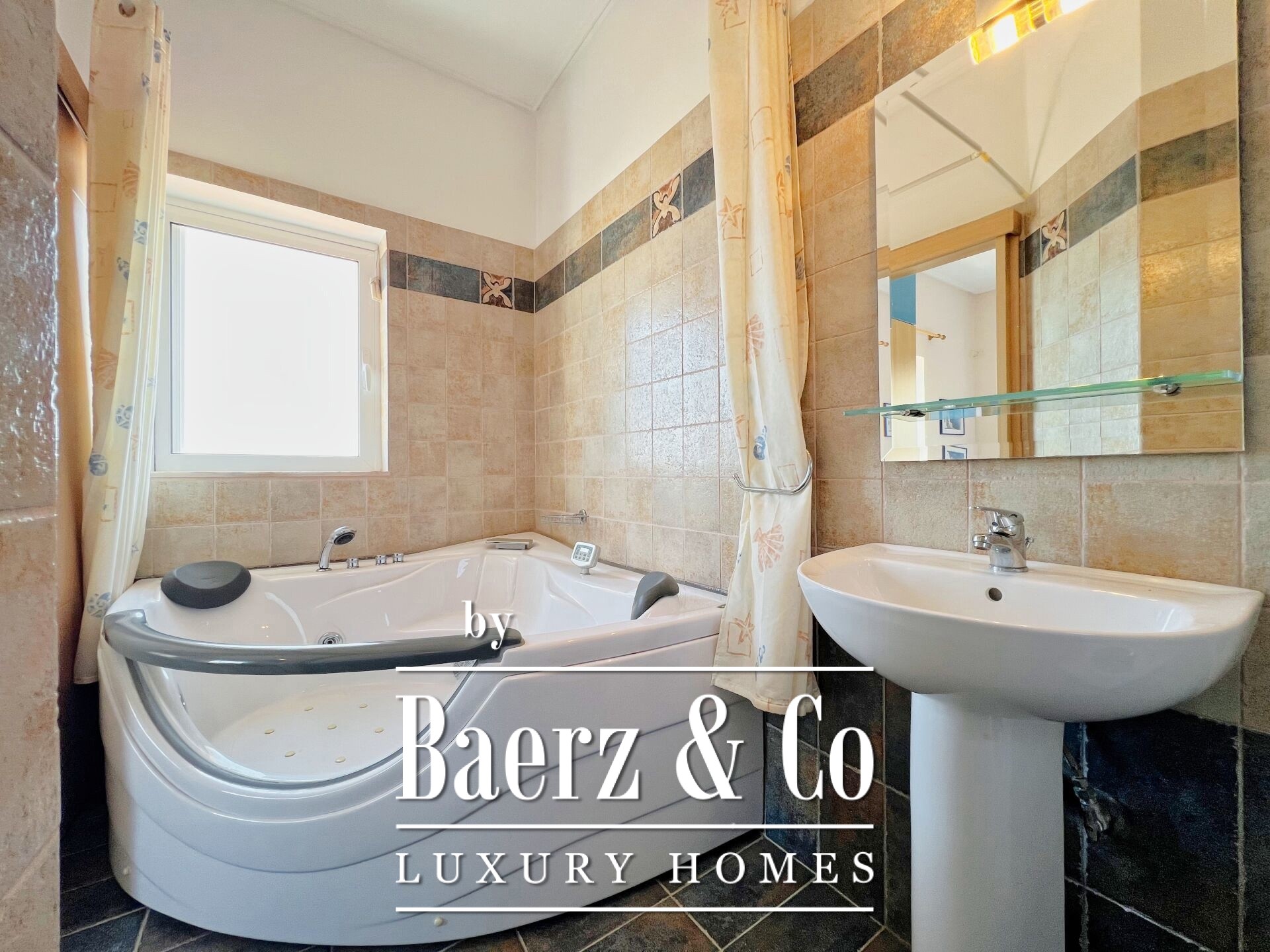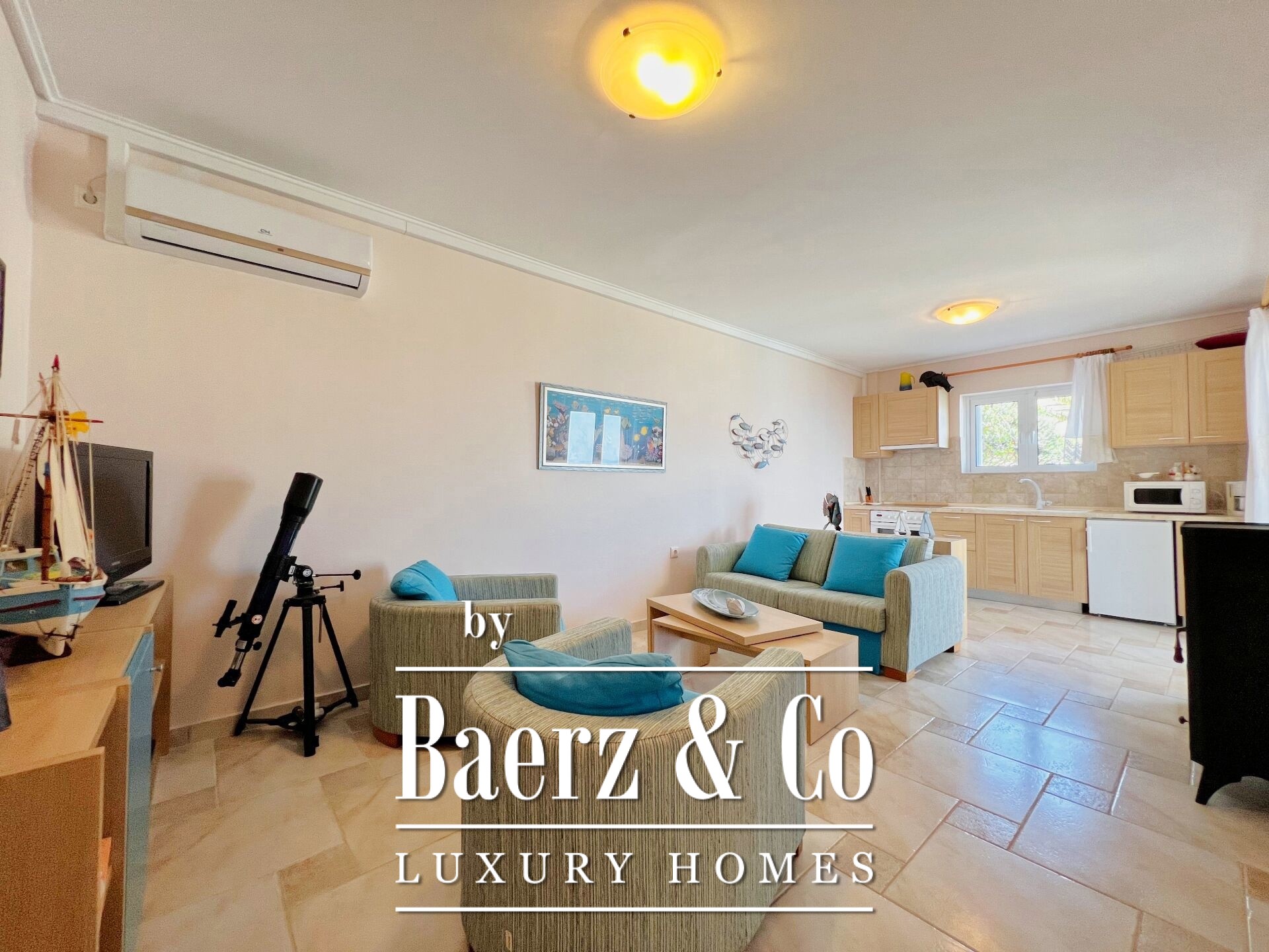 De hoofdresidentie omvat een appartement op de begane grond van 45,73 m² met een eigen entree, een stijlvolle keuken, één slaapkamer en een centrale badkamer. Aangrenzend bevindt zich een maisonette van 68,76 m², verdeeld over twee verdiepingen, met een open woonkamer, een haard, moderne keuken, glazen kamer geschikt voor ontspanning of werk, een gastentoilet en een lichte master bedroom met en suite badkamer. Ruime veranda's op elke verdieping omlijsten het uitzicht en nodigen uit tot buitenleven.