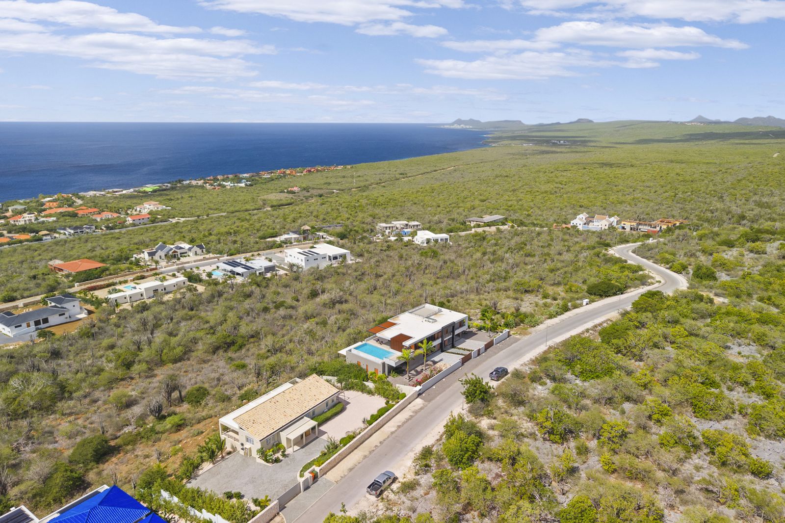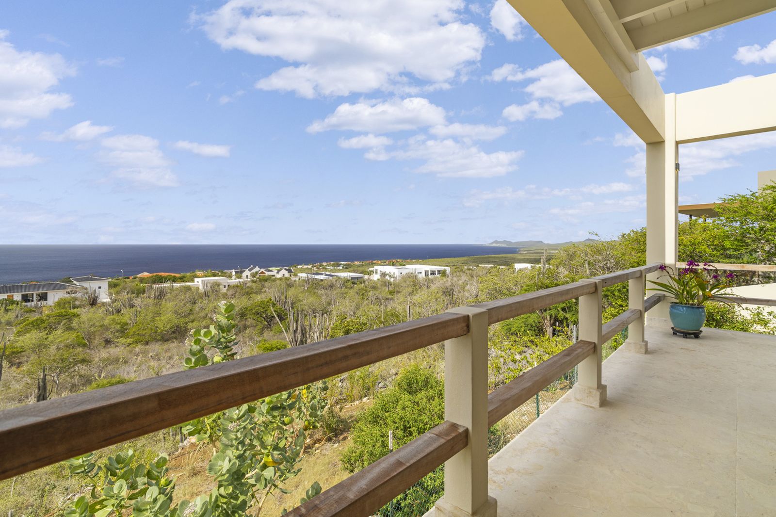Met geen bebouwing achter de woning en een weids, panoramisch uitzicht over de Caribische Zee biedt deze villa een uitzonderlijk gevoel van privacy en rust. De horizon is hier geen detail, maar een blijvende waarde.