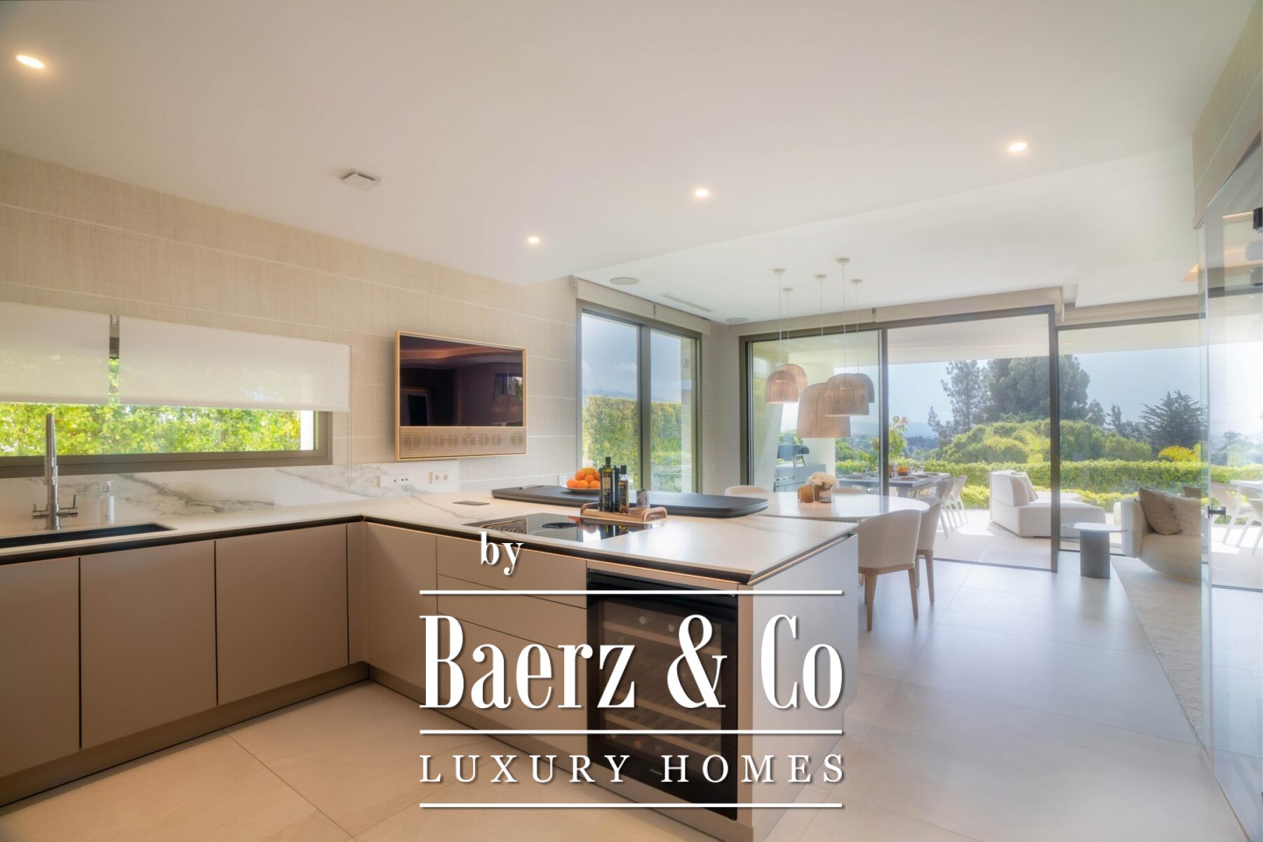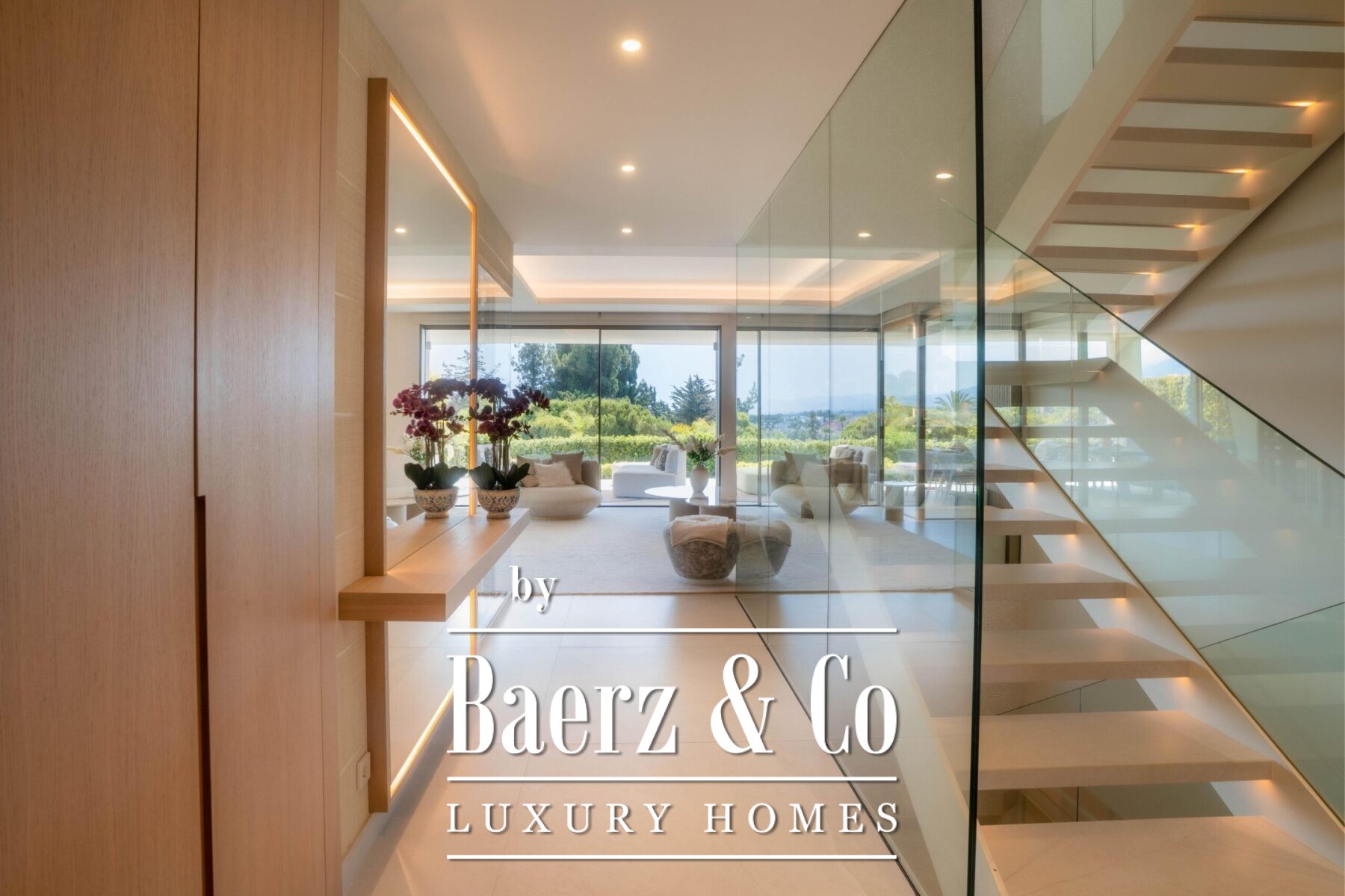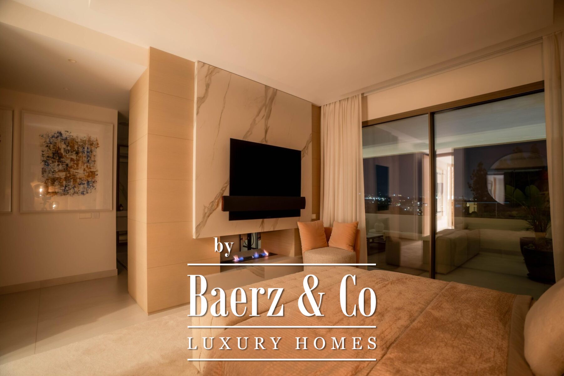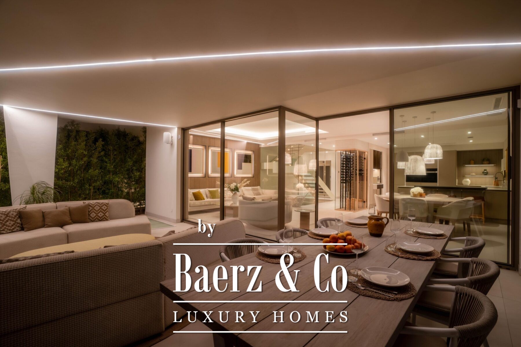 De royale leefruimtes staan in directe verbinding met een overdekt terras, ontworpen voor een naadloze overgang tussen binnen en buiten. Het op maat gemaakte dakterras met privé plunge pool biedt panoramisch uitzicht over de Golf Valley en de iconische berg La Concha. Een privé lift verbindt elk van de vier verdiepingen, waardoor elke ruimte moeiteloos toegankelijk is, terwijl de volledig uitgeruste Siematic keuken uitnodigt tot gezellige momenten samen.