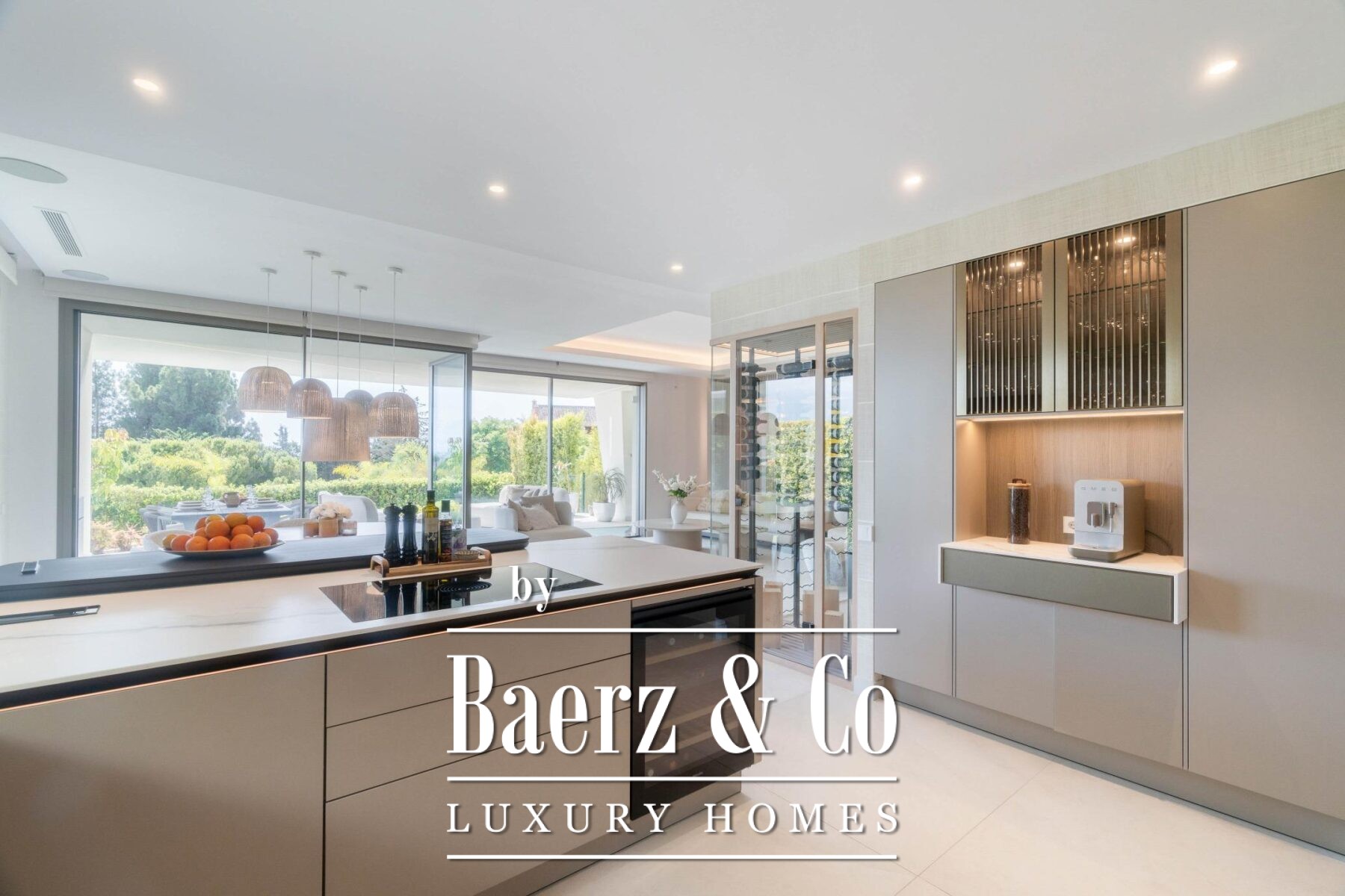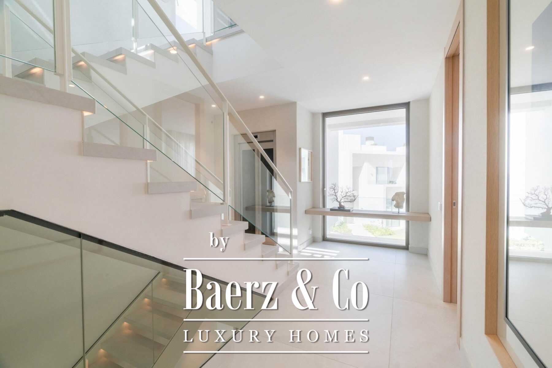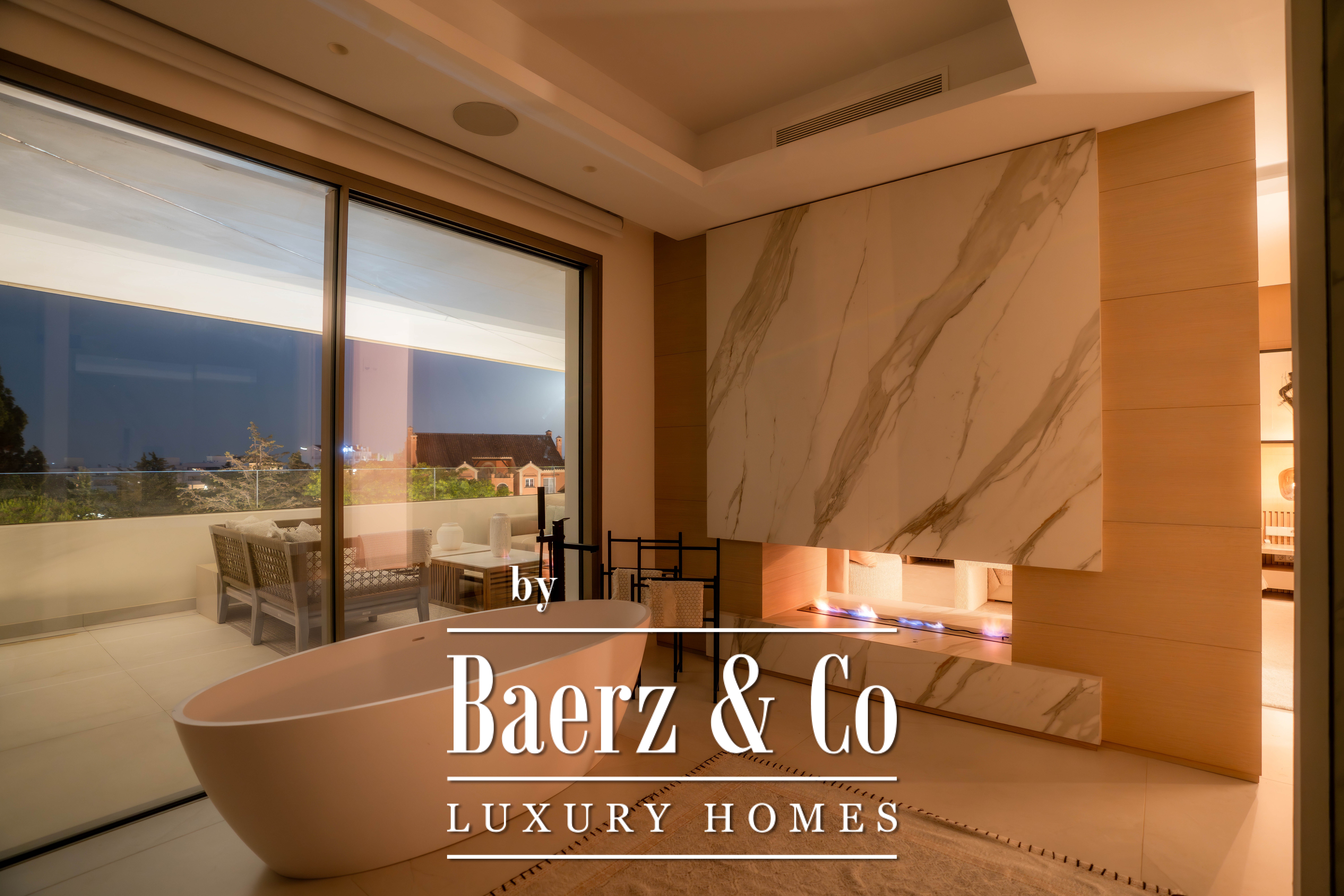 De royale leefruimtes staan in directe verbinding met een overdekt terras, ontworpen voor een naadloze overgang tussen binnen en buiten. Het op maat gemaakte dakterras met privé plunge pool biedt panoramisch uitzicht over de Golf Valley en de iconische berg La Concha. Een privé lift verbindt elk van de vier verdiepingen, waardoor elke ruimte moeiteloos toegankelijk is, terwijl de volledig uitgeruste Siematic keuken uitnodigt tot gezellige momenten samen.