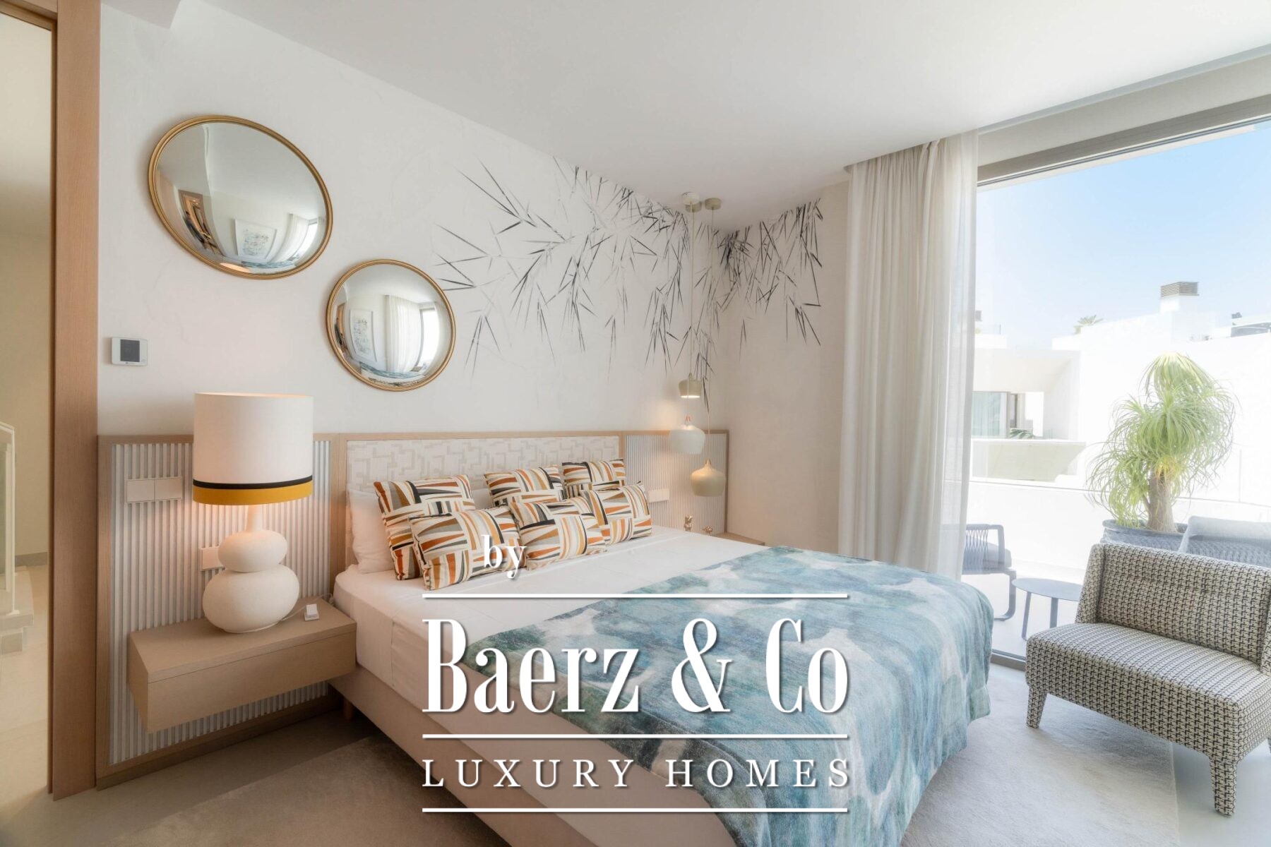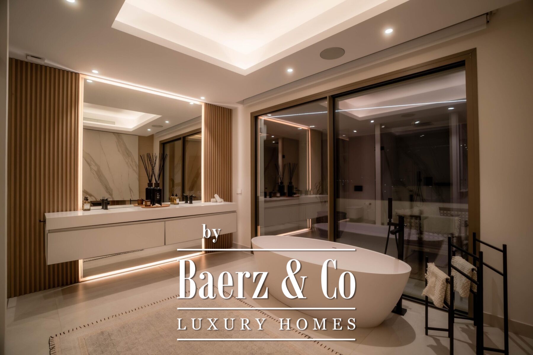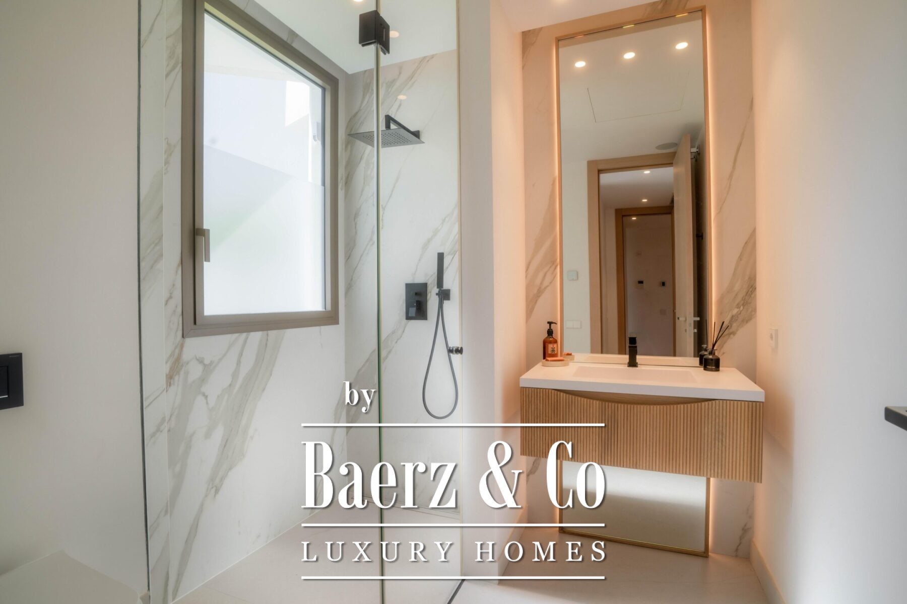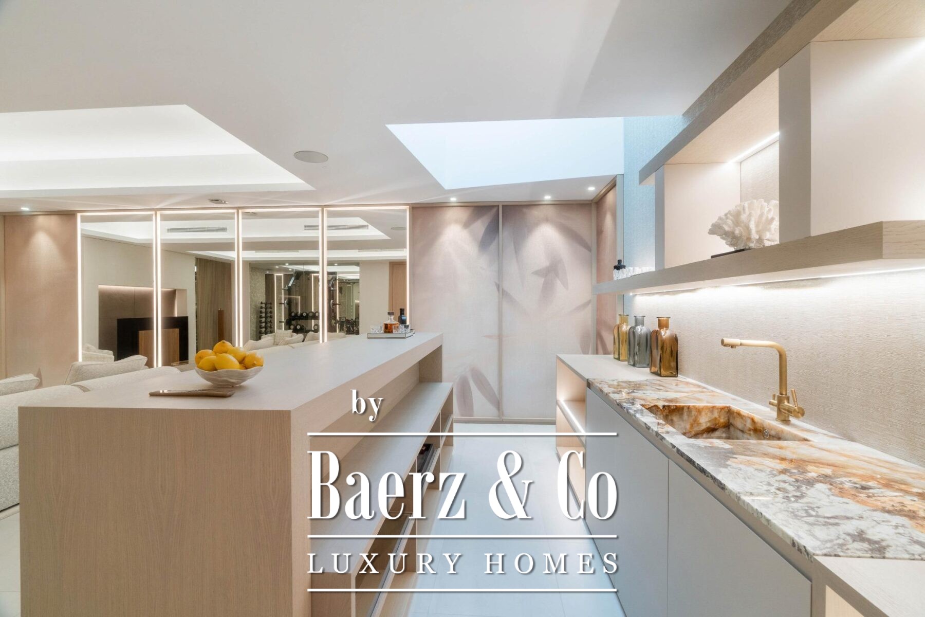 De royale leefruimtes staan in directe verbinding met een overdekt terras, ontworpen voor een naadloze overgang tussen binnen en buiten. Het op maat gemaakte dakterras met privé plunge pool biedt panoramisch uitzicht over de Golf Valley en de iconische berg La Concha. Een privé lift verbindt elk van de vier verdiepingen, waardoor elke ruimte moeiteloos toegankelijk is, terwijl de volledig uitgeruste Siematic keuken uitnodigt tot gezellige momenten samen.