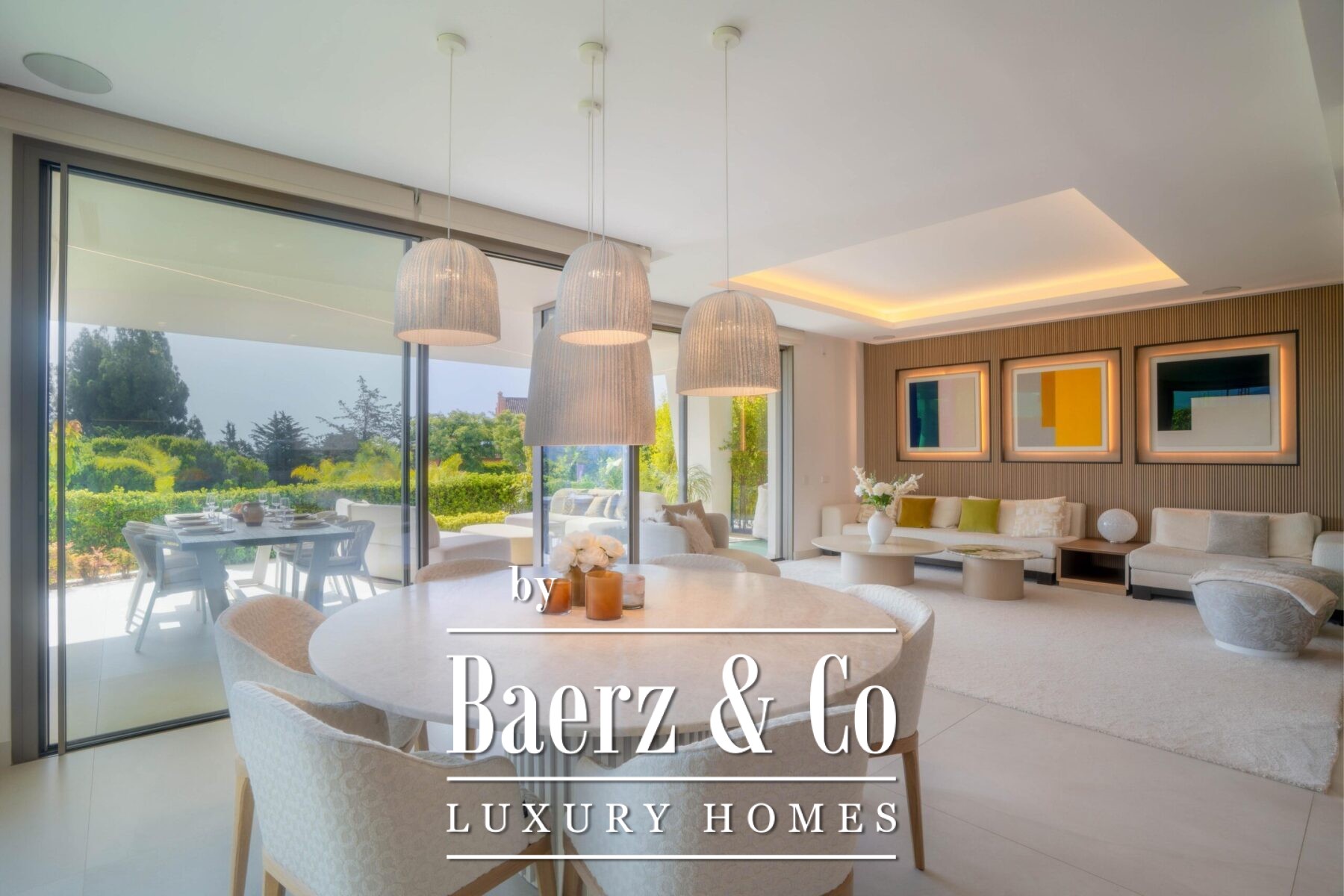 Geavanceerde domotica omvatten een Lutron smart home-systeem, vloerverwarming, airconditioning en geïntegreerd entertainment van Bang & Olufsen. Voor sportliefhebbers is er een privé gym voorzien van hoogwaardige Eleiko-apparatuur. De garage biedt plaats aan twee tot drie auto's en de villa bevindt zich op korte afstand van winkels, restaurants, golf en de haven. De woning wordt volledig gemeubileerd aangeboden in een stijl die zowel warm als verfijnd is, een uitzonderlijk aanbod in het gewilde Nueva Andalucía van Marbella.