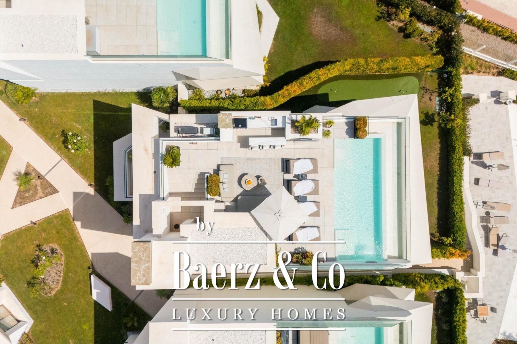 Deze eigentijdse villa in Nueva Andalucía Marbella staat garant voor verfijnde architectuur en uitzonderlijke privacy binnen een prestigieuze, beveiligde gemeenschap in het hart van Marbella. De villa beschikt over vier slaapkamers en vier badkamers en is een voorbeeld van modern design, gekenmerkt door krachtige geometrische lijnen en een palet van natuurlijke materialen in rustgevende, neutrale tinten. Met een woonoppervlakte van 665 m² op een perceel van eveneens 665 m² biedt deze villa volop ruimte zonder concessies.