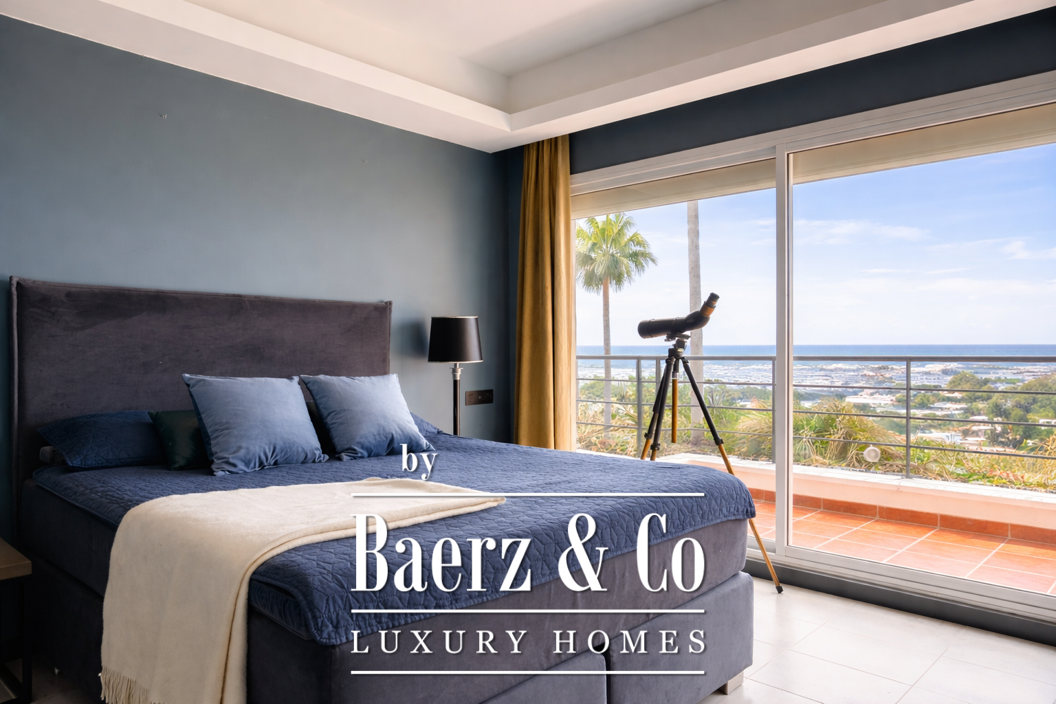 Het geheel wordt gecompleteerd met twee privéparkeerplaatsen en een berging die per lift bereikbaar zijn. Het panoramische uitzicht op zee en de golfbaan biedt balans en rust, waardoor dit een verfijnde keuze is binnen het residentiële aanbod van Marbella.