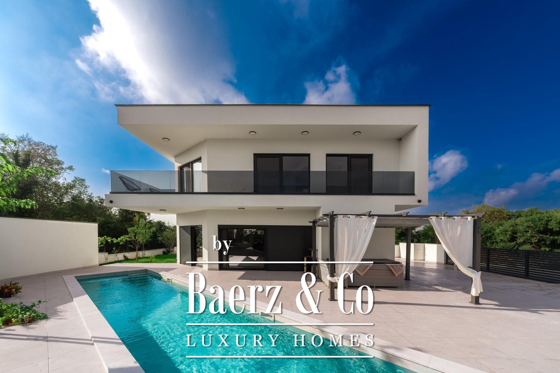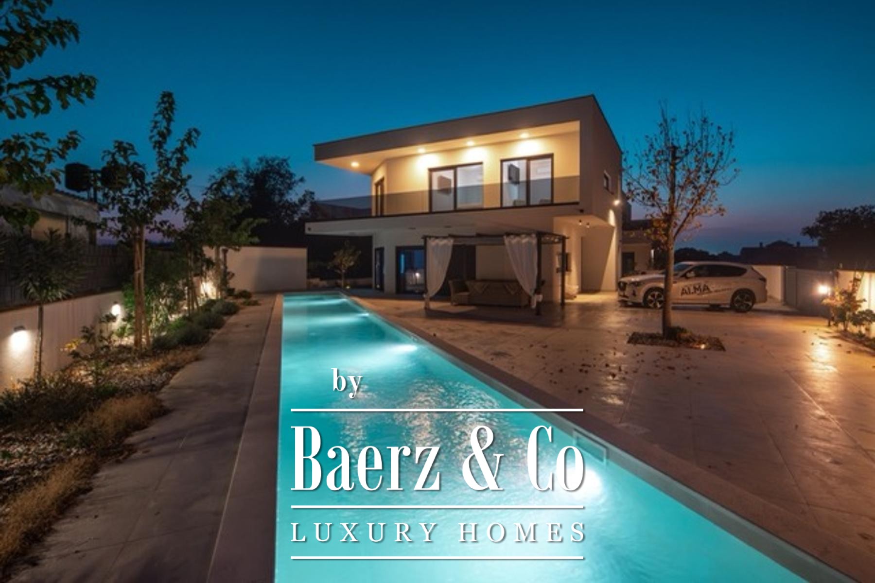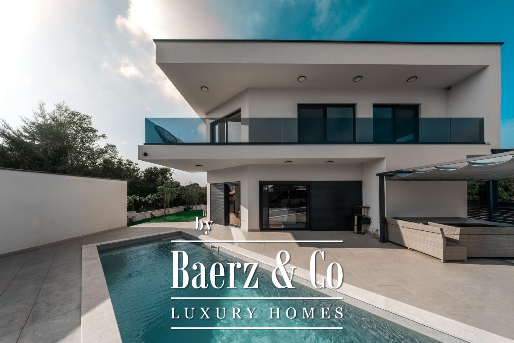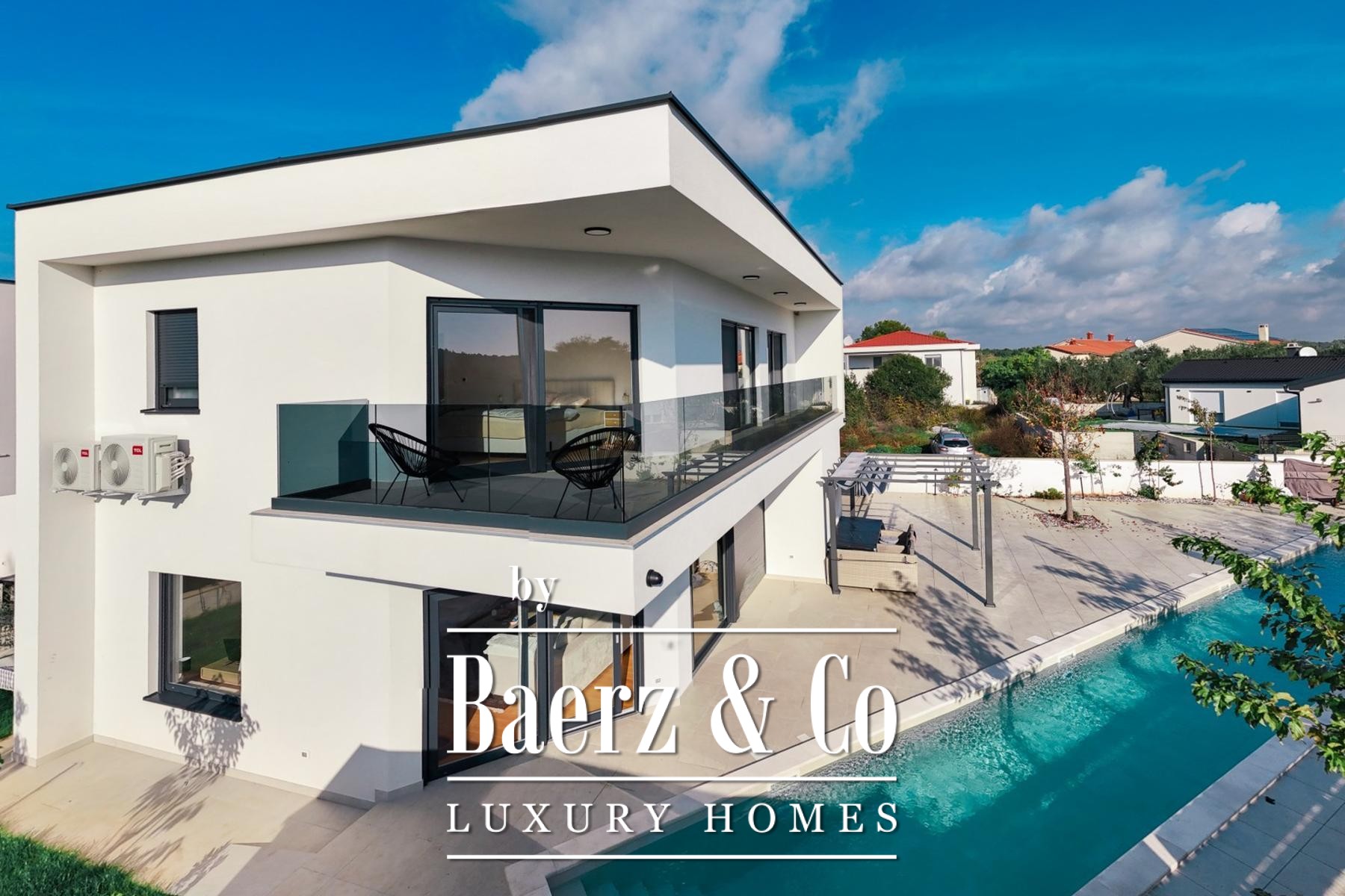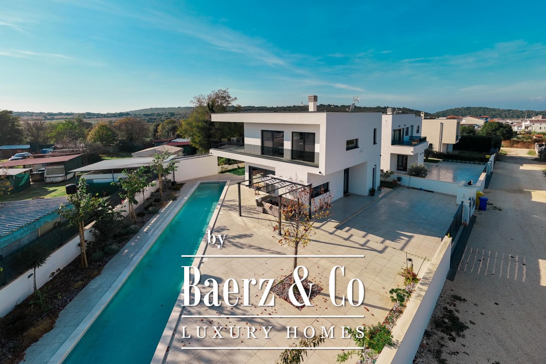 Moderne villa Medulin combineert eigentijds design met mediterrane rust in de prestigieuze wijk Volme. Op slechts vijf minuten wandelen van de kristalheldere zee beslaat deze nieuwbouw 190 m² op een fraai aangelegd perceel van 500 m² en biedt daarmee een inspirerende kustlevensstijl in Kroatië.