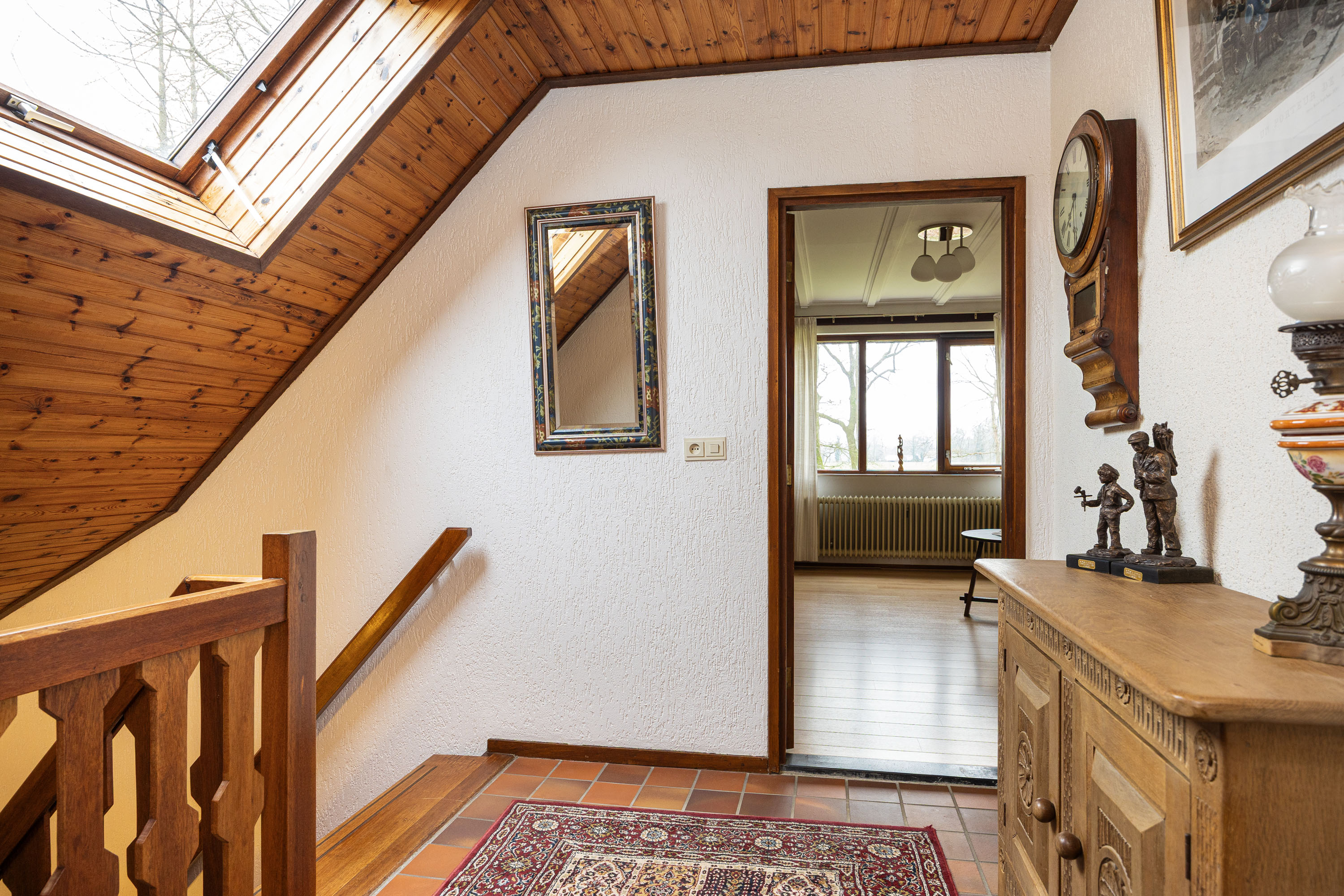 De woning heeft een charmante uitstraling met een karakteristiek dak en een speelse combinatie van hout en metselwerk. Grote raampartijen zorgen voor veel lichtinval en een fijn contact met de groene omgeving. In 1978 is het opgebouwd uit kwalitatief hoogwaardige materialen, hetgeen nog steeds zorgt voor een solide woongenot. En dankzij de aanwezige zonnepanelen voorbereid op energiezuinig wonen. Het landhuis is royaal van opzet met een gebruiksoppervlakte wonen van circa 225 m² en een inhoud van ongeveer 1.040 m³, wat zorgt voor volop leefruimte voor het hele gezin.