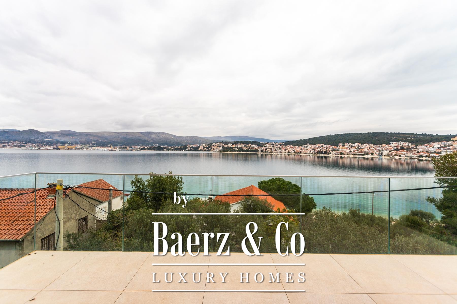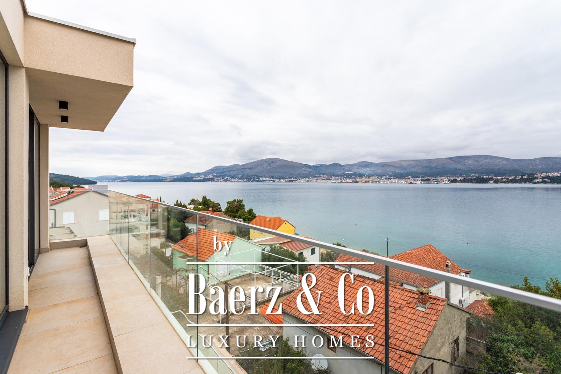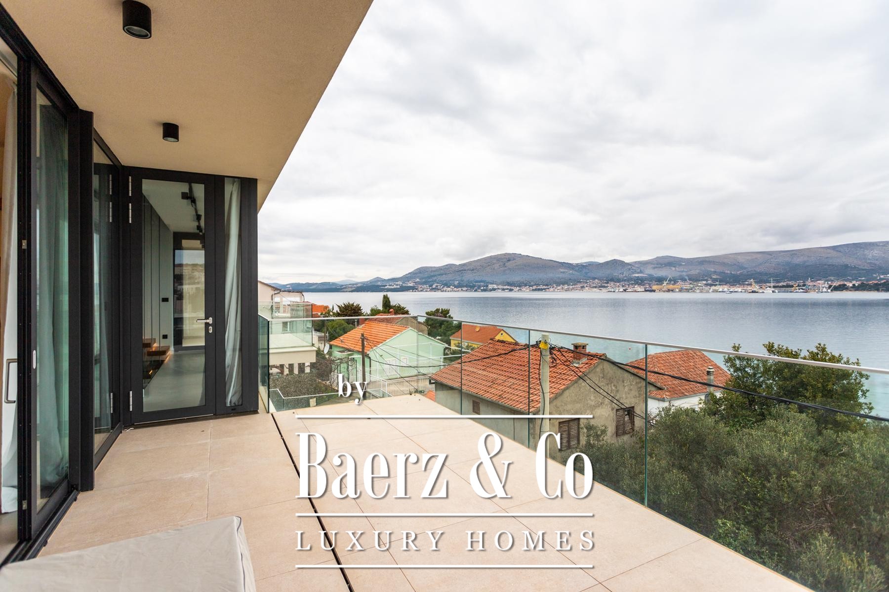 Villa Okrug met panoramisch uitzicht ligt op slechts vijftig meter van het kiezelstrand en biedt serene rust en elegant wonen in Kroatië. Deze moderne villa beschikt over 400 m² zorgvuldig ontworpen woonruimte op een perceel van 470 m². De architectuur benadrukt licht, openheid en een vloeiende verbinding tussen de ruimtes.