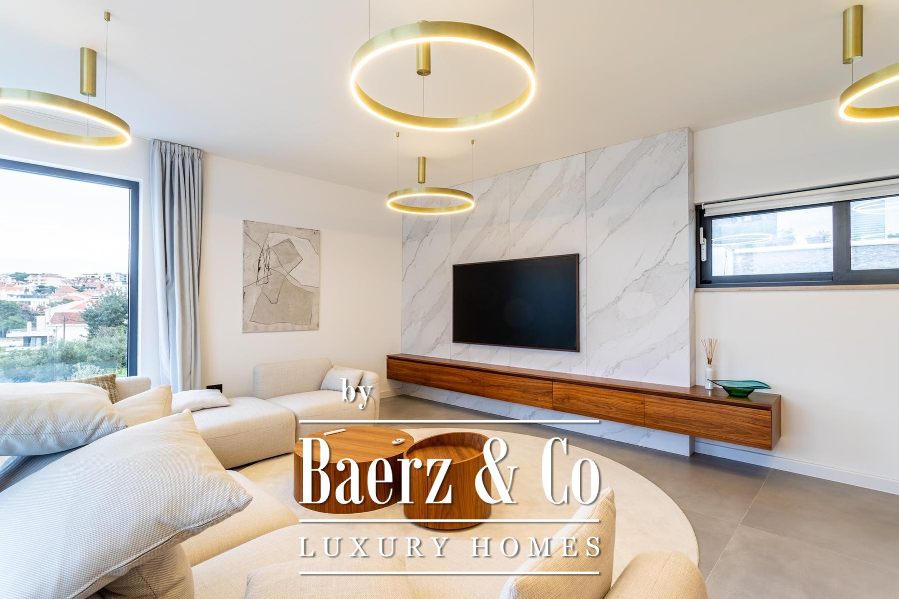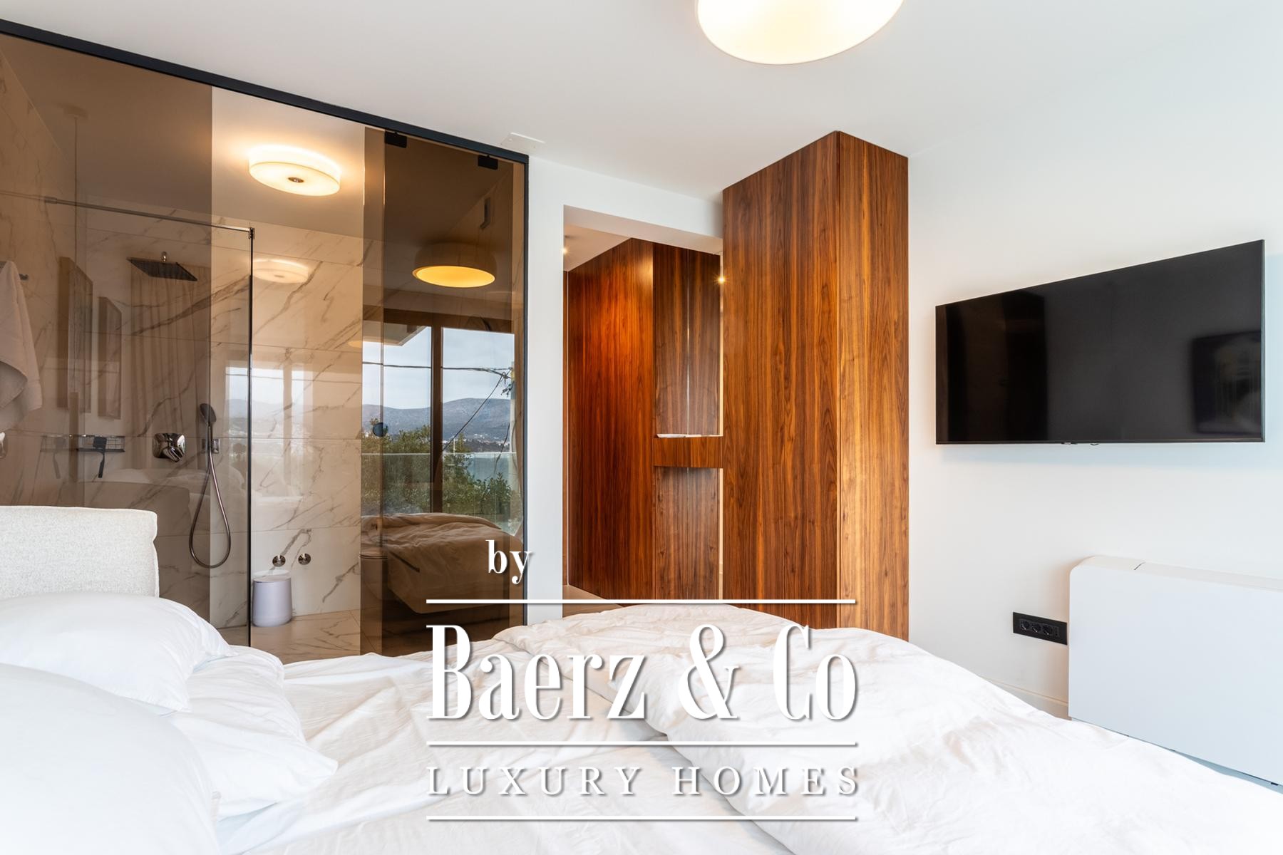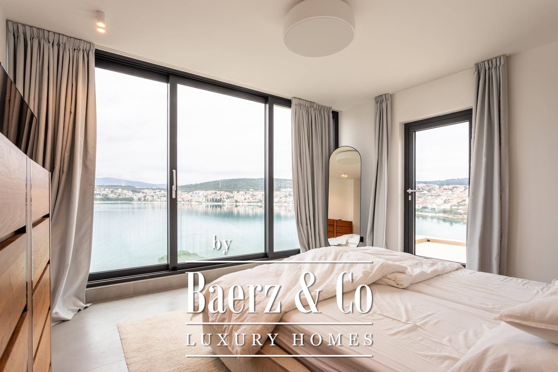 Villa Okrug met panoramisch uitzicht ligt op slechts vijftig meter van het kiezelstrand en biedt serene rust en elegant wonen in Kroatië. Deze moderne villa beschikt over 400 m² zorgvuldig ontworpen woonruimte op een perceel van 470 m². De architectuur benadrukt licht, openheid en een vloeiende verbinding tussen de ruimtes.