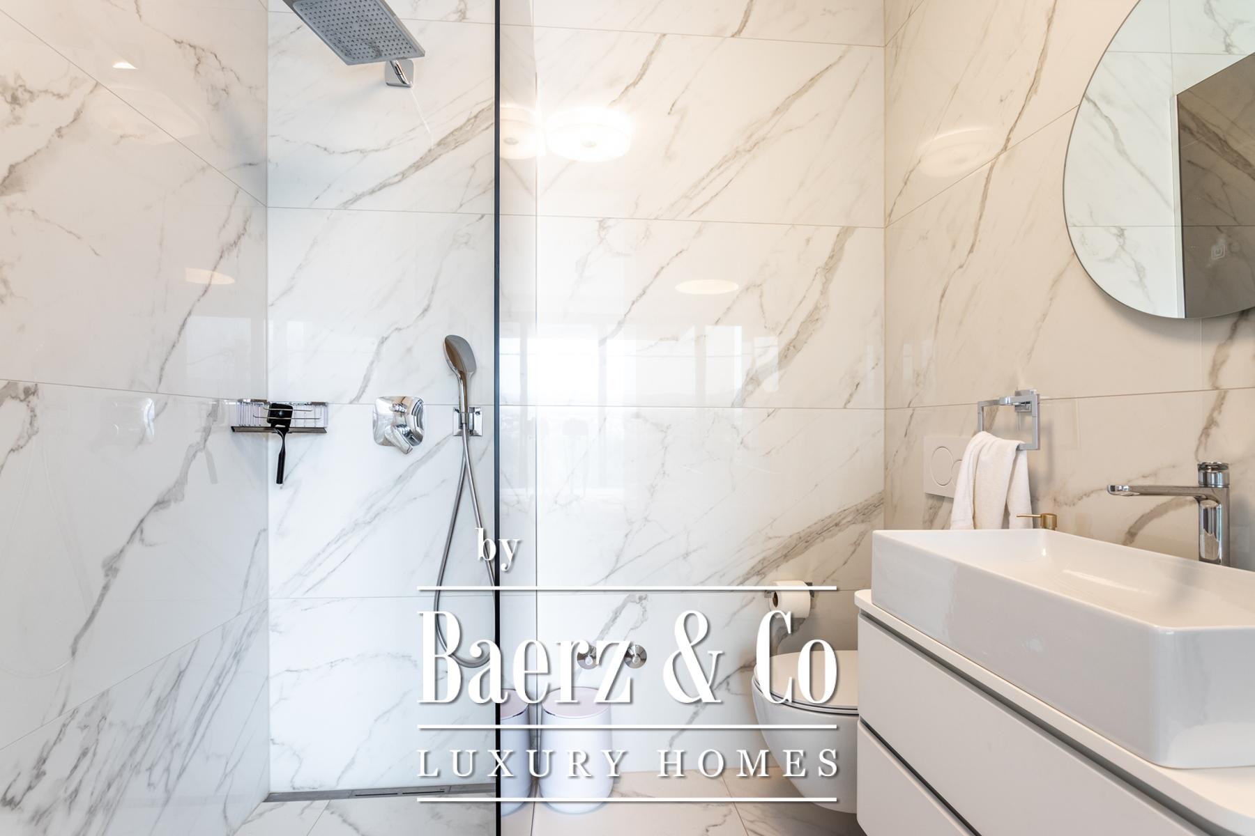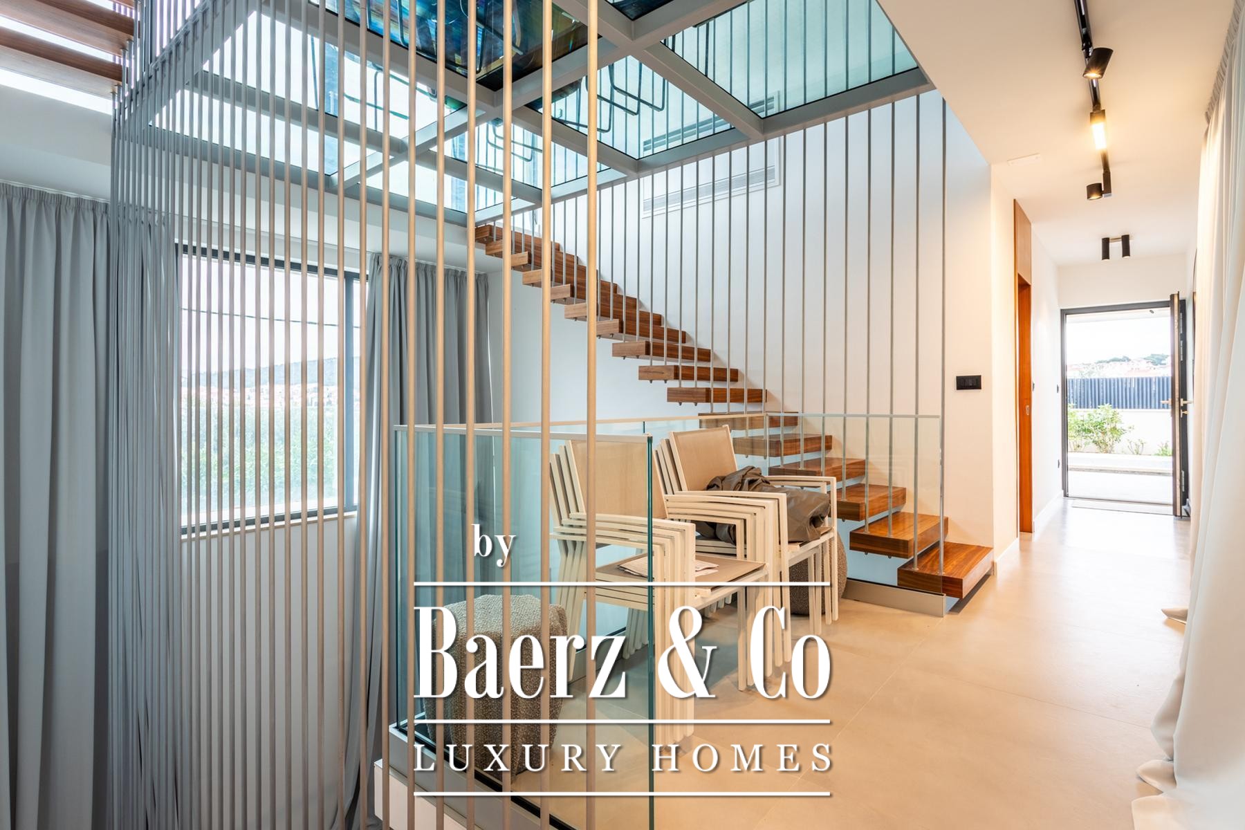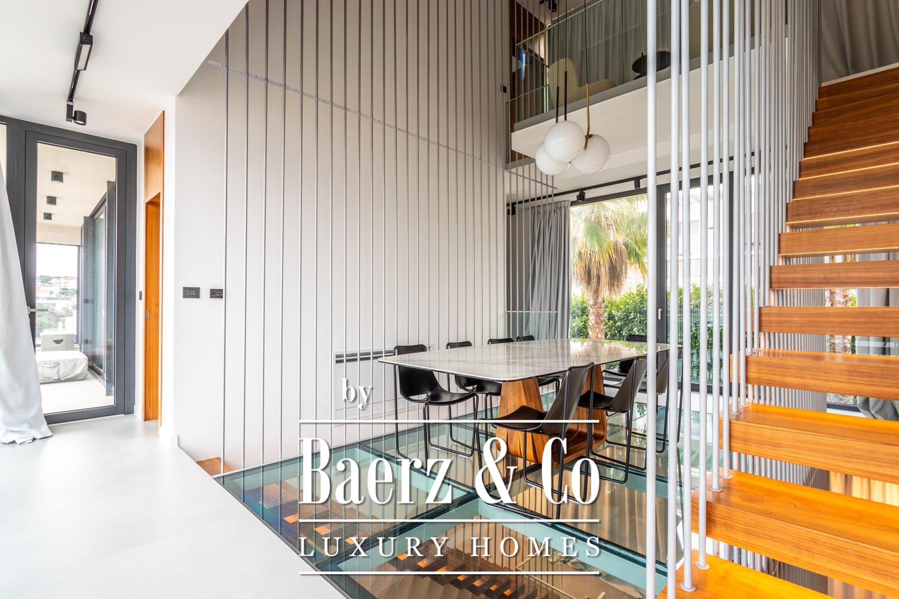 Binnen bieden vier verdiepingen plaats aan vier slaapkamers en vier badkamers. Iedere etage kenmerkt zich door doordacht design, op maat gemaakt meubilair en verfijnde voorzieningen. Het souterrain is volledig ingericht op welzijn en ontspanning en omvat een wijnkelder, sauna, speelkamer, fitnessruimte en wasruimte. Dit voegt een ingetogen gevoel van luxe toe aan het dagelijkse leven. De begane grond grenst aan een terras met privézwembad en zonneterras, terwijl de bovenste verdiepingen beschikken over een eigentijdse keuken, eetruimte en een royale woonkamer met directe toegang tot het balkon.