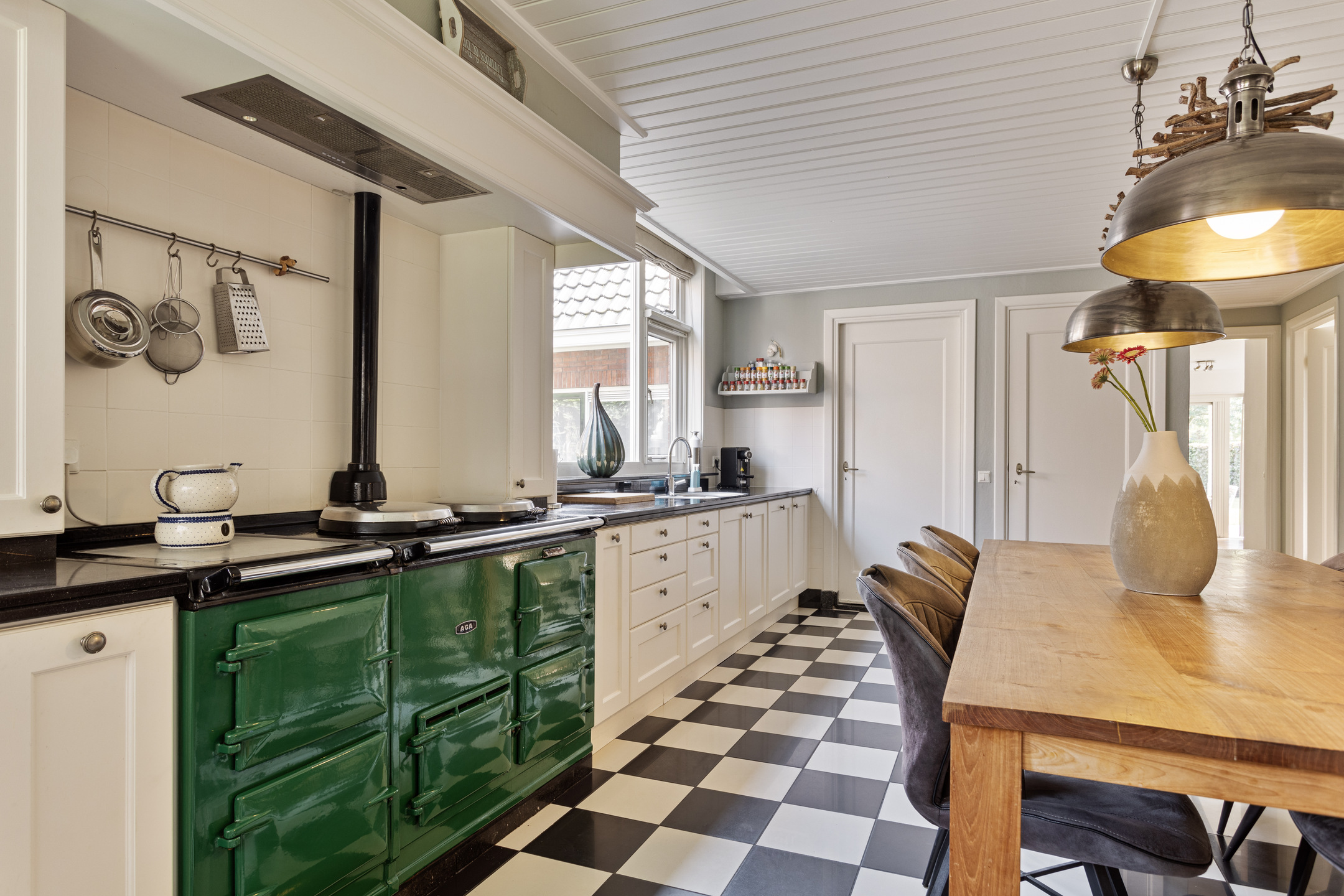 Begane grond: entree, royale hal met trappenhuis en toilet met fonteintje. Via deze centrale hal is er toegang tot de eerste woon-/zit-/hobbykamer en ook toegang tot de royale woonkeuken welke is uitgerust met diverse inbouwapparatuur zoals een koelkast, vaatwasser, gave AGA kookplaat met ingebouwde ovens, afzuigkap en volop bergruimte in de vele kasten. Via de keuken is er toegang tot de provisiekelder van ca. 10,3m². Door naar de tuingerichte woonkamer met openslaande tuindeuren waardoor er prachtig uitzicht ontstaat op de tuin, sfeervolle openhaard en nog een separate ruimte welke momenteel is ingericht als tv-kamer maar ook uitermate geschikt is voor bijvoorbeeld hobbymatig gebruik of een speelkamer. Tal van mogelijkheden door het diverse aanbod aan ruimtes. Via de zij-entree van de woning kom je direct in de bijkeuken met aansluiting voor de wasmachine-/droger én is er nog een stenen berging met extra bergruimte. In deze berging zit tevens de trap naar een extra ruimte welke nu als kantoor fungeert. Door de dakkapel en dakramen is deze ruimte ook perfect voor bijvoorbeeld een extra slaapkamer.