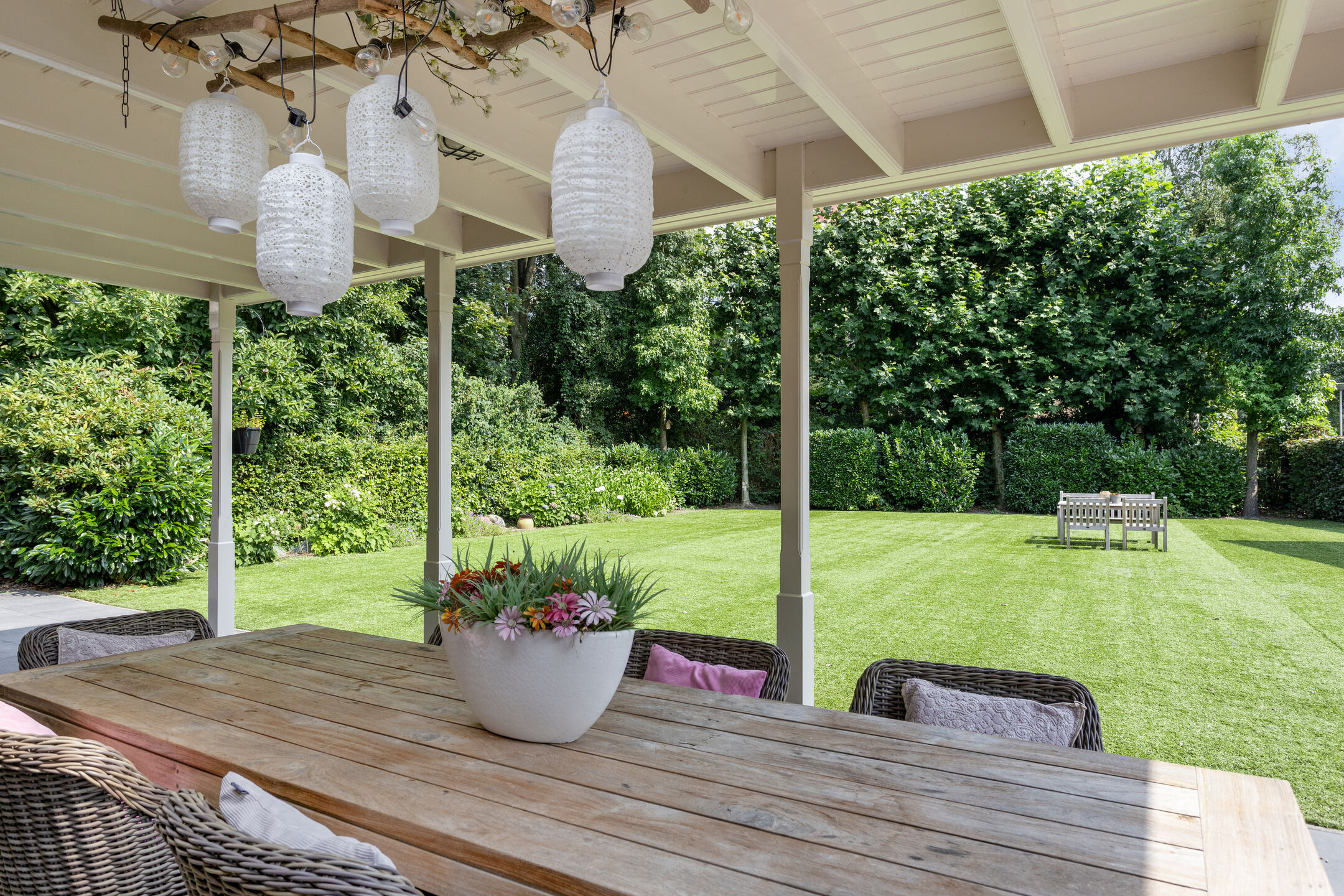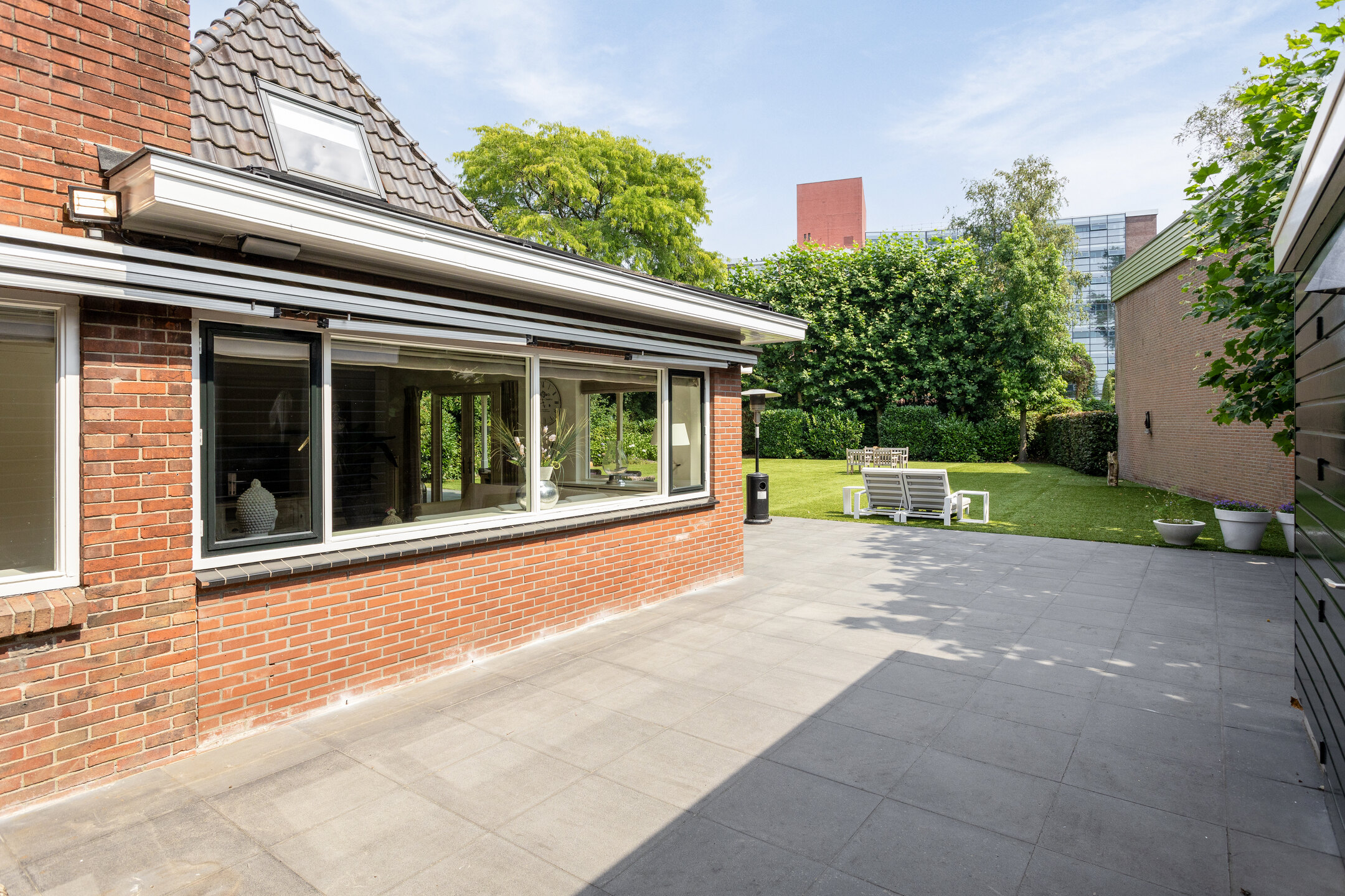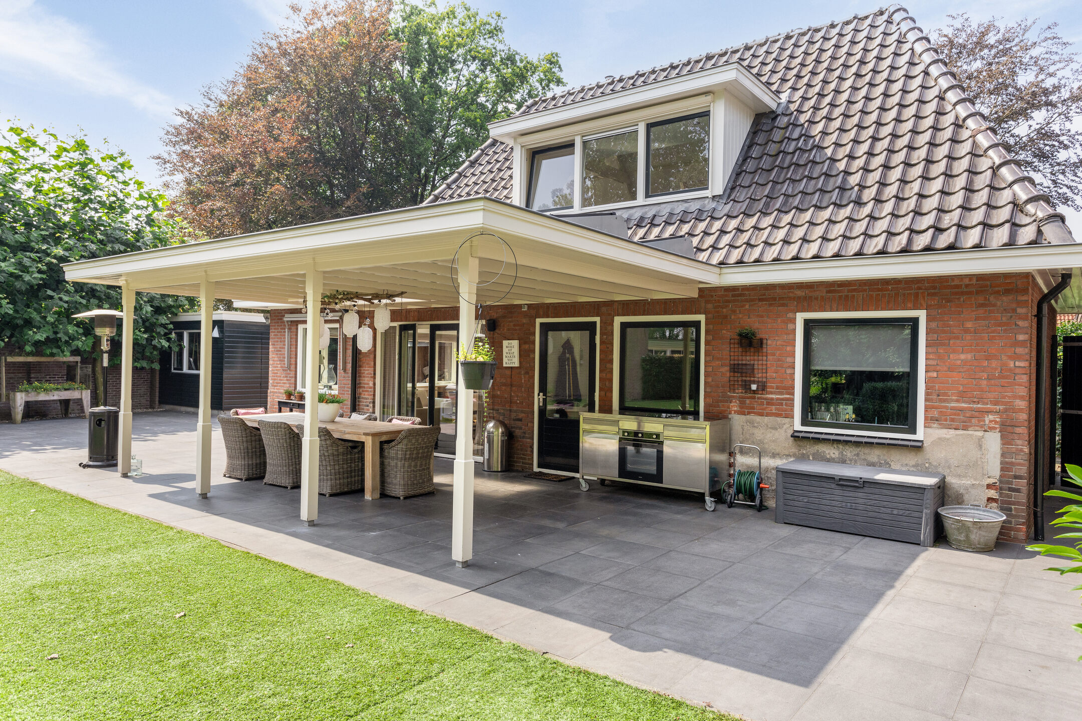 Uniek aan deze woning is toch wel de achtertuin, wonen in het centrum van Oldenzaal maar het gevoel hebben alsof je buitenaf woont wanneer je plaatsneemt in deze heerlijke tuin met vrij en groen uitzicht, volop privacy en gelegen op het oosten. Een royale overkapping zorgt er voor dat je hier een groot gedeelte van het jaar goed kunt vertoeven. Nog niet genoeg bergruimte? Geen probleem, er is ook nog een vrijstaande stenen garage aanwezig aan de zijkant van de woning.