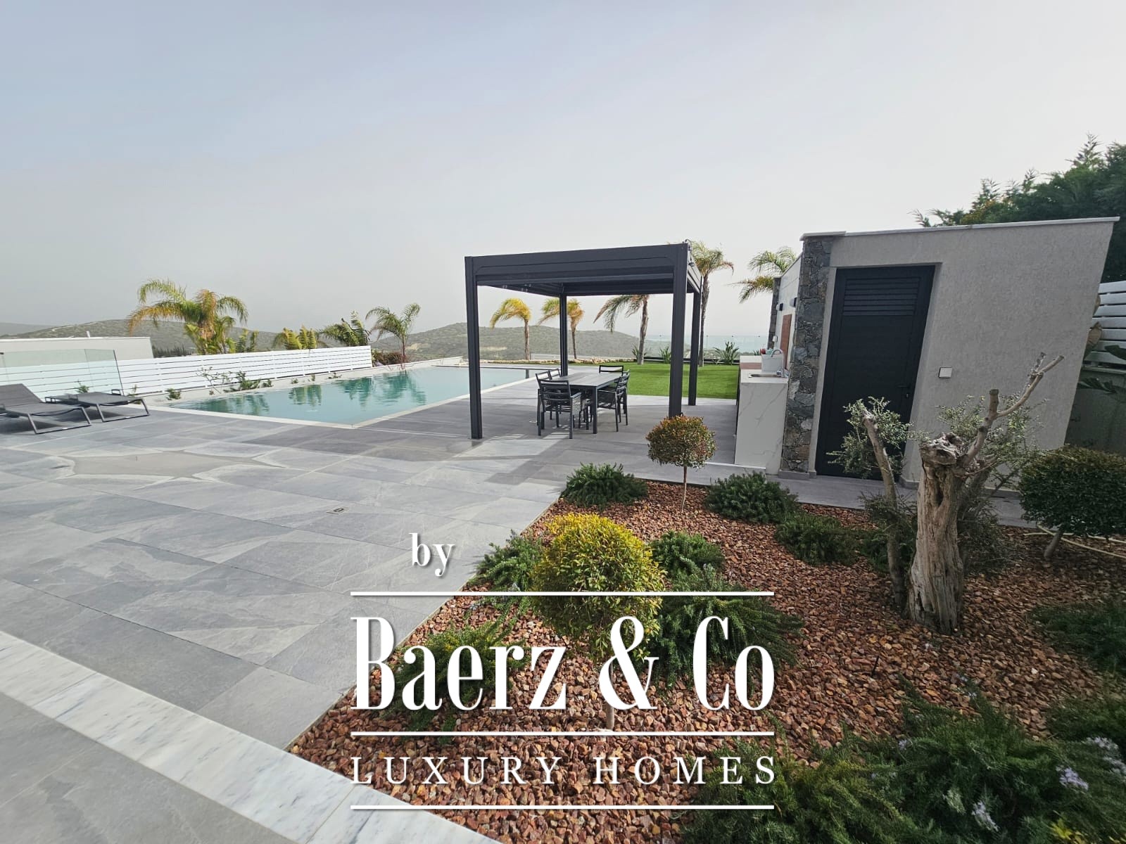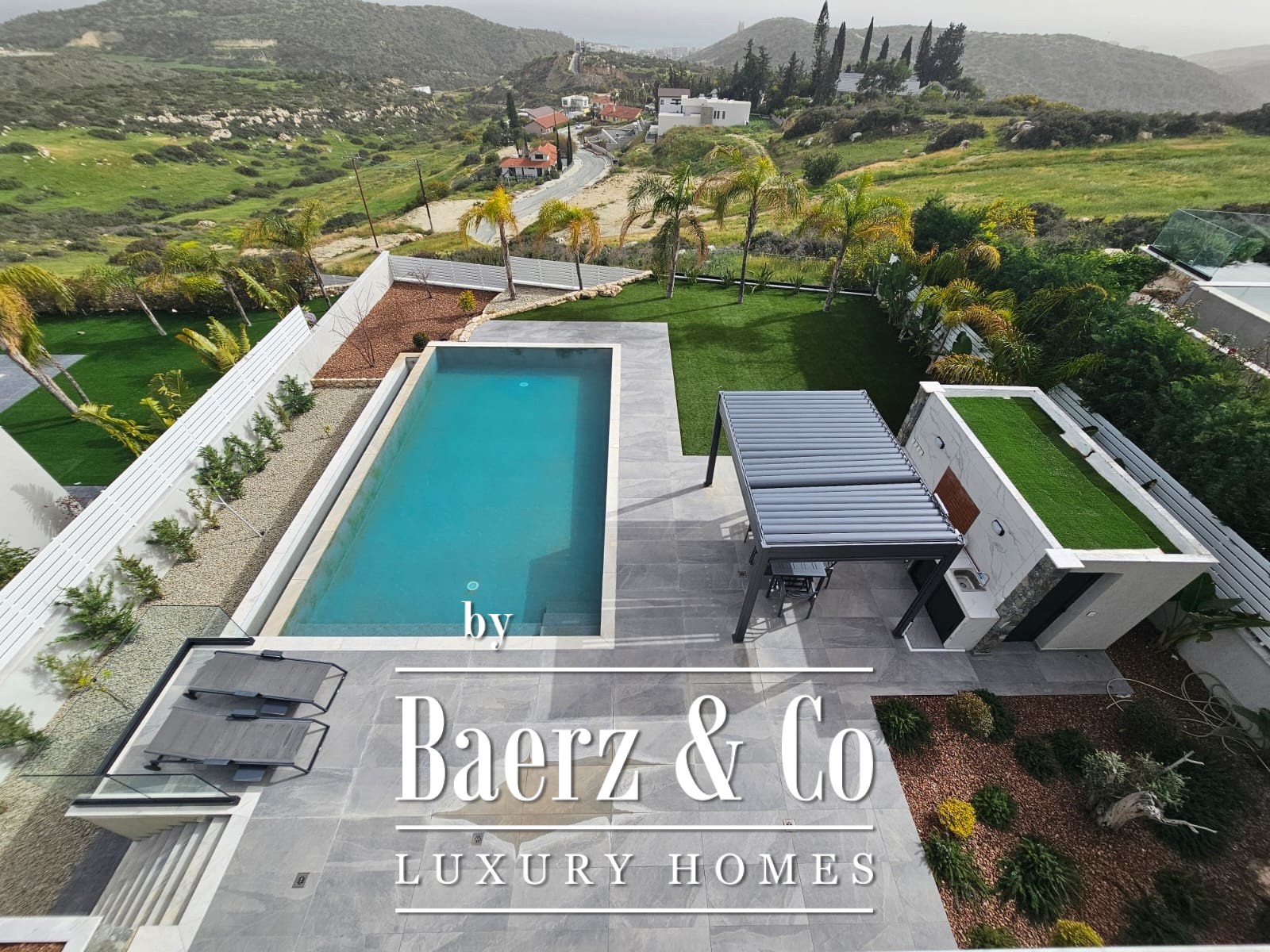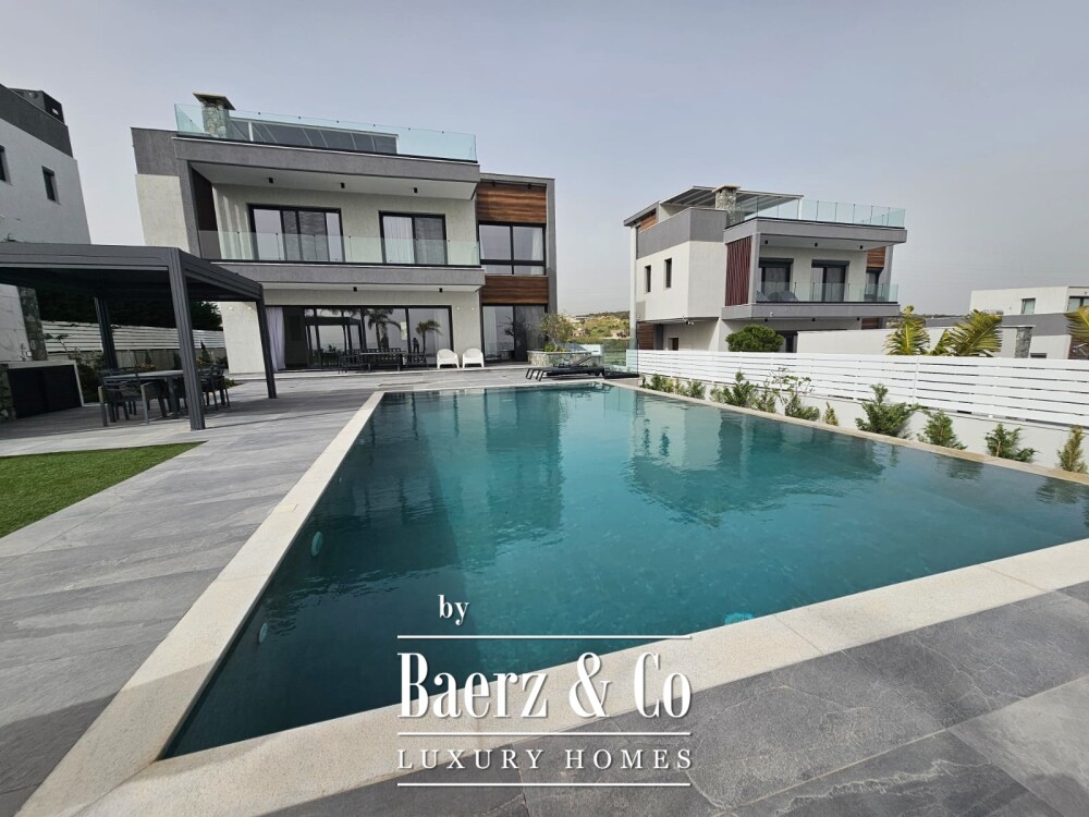 Buiten omringt de aangelegde tuin het privézwembad en de barbecuehoek, aangevuld met een douche en toilet bij het zwembad. Acht parkeerplaatsen, royale bergruimte, een veiligheidsslot en een aparte servicekamer maken het geheel compleet. Deze villa vertegenwoordigt exclusief wonen voor wie zich aangetrokken voelt tot het unieke panorama en de rust van Parekklisia.