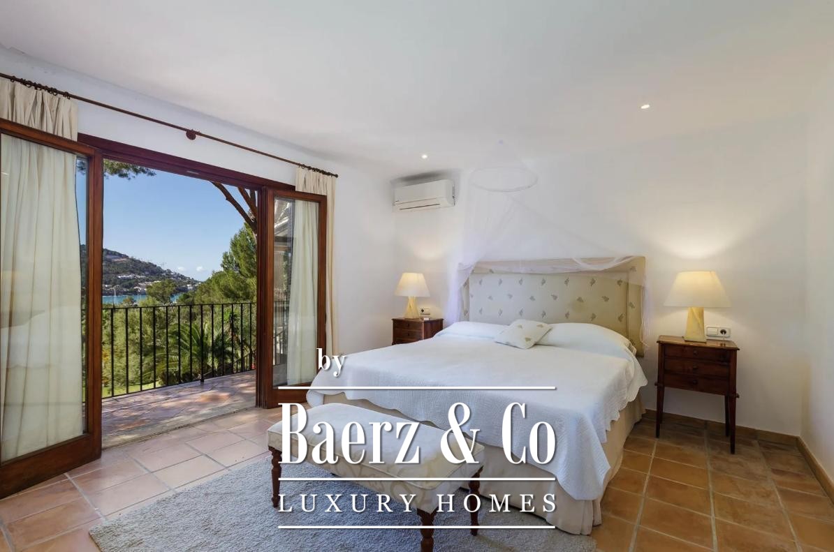 Finca met zeezicht in Port d’Andratx, gesitueerd op een privéperceel van 6.411 m², waar het mediterrane licht door 694 m² aan leefruimte stroomt. De finca biedt een harmonie van rust, privacy en ingetogen luxe, met zes tweepersoonsslaapkamers en vijf badkamers. De mastersuite onderscheidt zich door een vrij uitzicht op zee en de omliggende bergen, terwijl elke extra slaapkamer uitkijkt op de haven of het landschap.