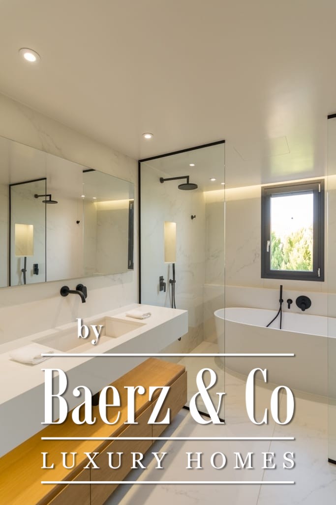 Het interieur ademt ingetogen luxe en combineert tijdloos mediterraan karakter met hedendaags comfort. Opvallende houten dakdetails en grootschalige antieke marmeren vloeren creëren een tastbare elegantie, terwijl royale raampartijen het daglicht overvloedig laten binnenvallen in de ruime ontvangstruimtes. De woon- en eetgedeeltes lopen naadloos over in brede terrassen en royale balkons, die panoramisch uitzicht op zee bieden richting Spetses, Hydra en de verre horizon.