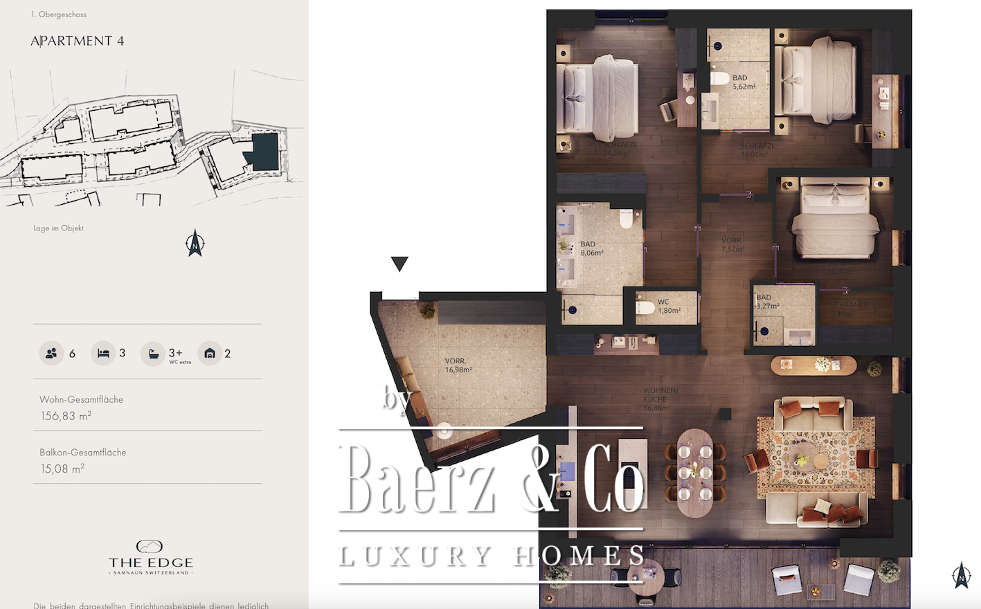 Apartment Samnaun Switzerland biedt een ervaring van ingetogen luxe in het hart van de Zwitserse Alpen. Met een woonoppervlak van 157 m² en drie slaapkamers is iedere residentie vormgegeven in eigentijdse alpine stijl, met hoogwaardige materialen en panoramische uitzichten die zowel de grootsheid als de rust van het omliggende berglandschap onthullen.