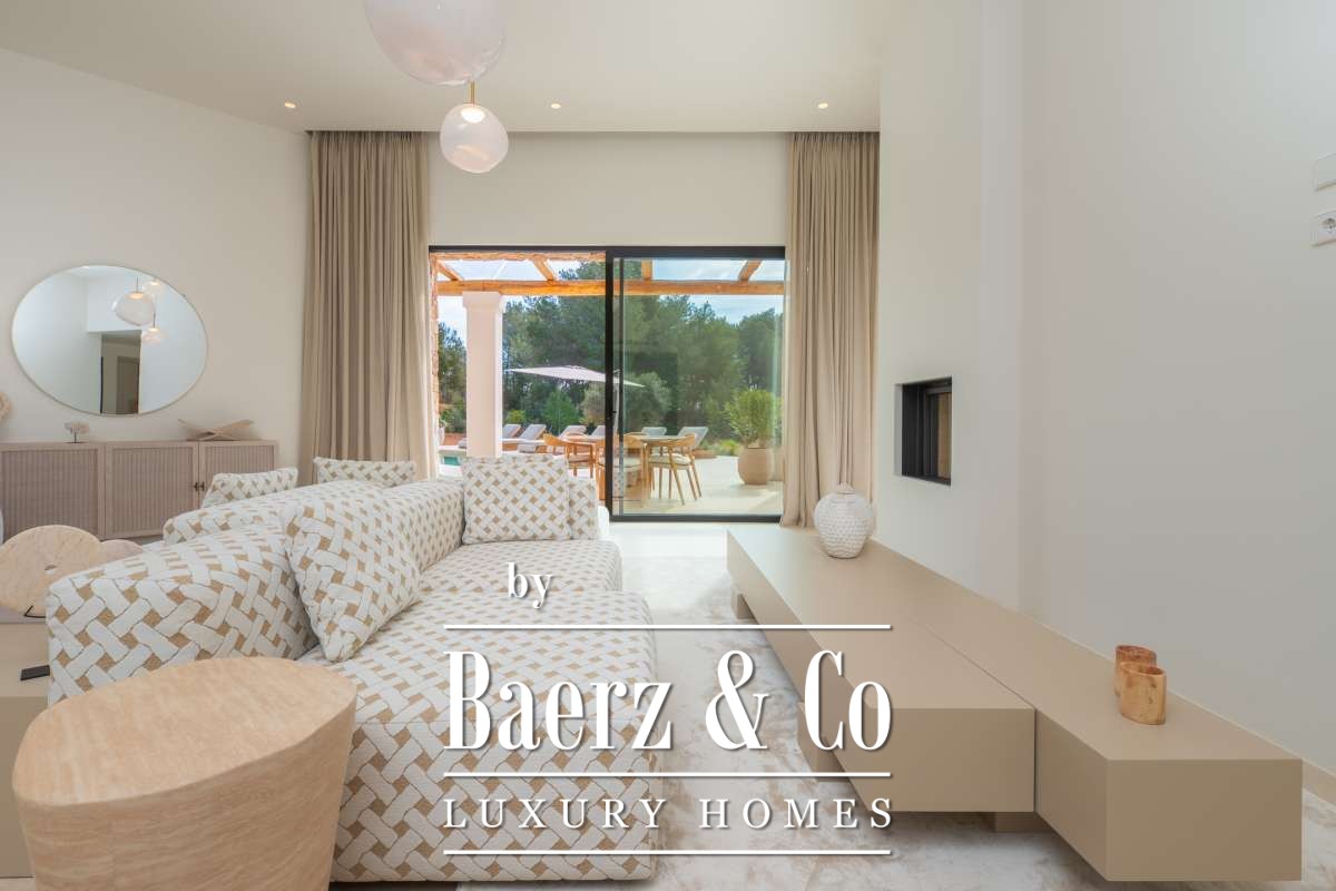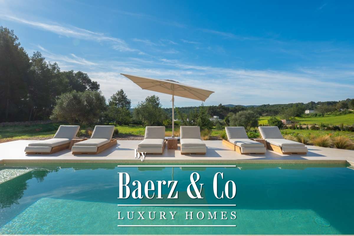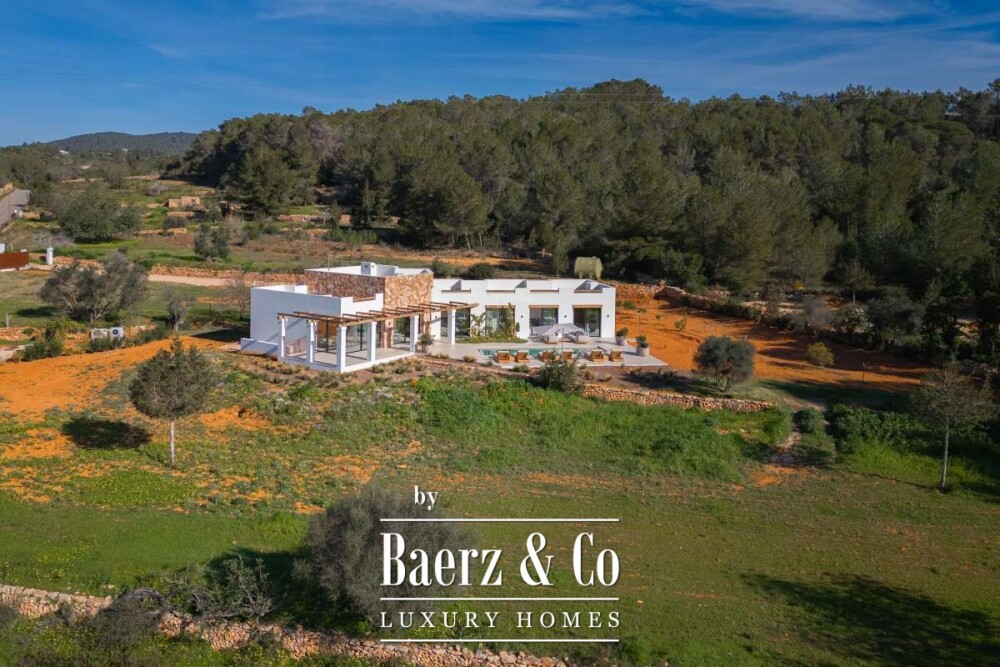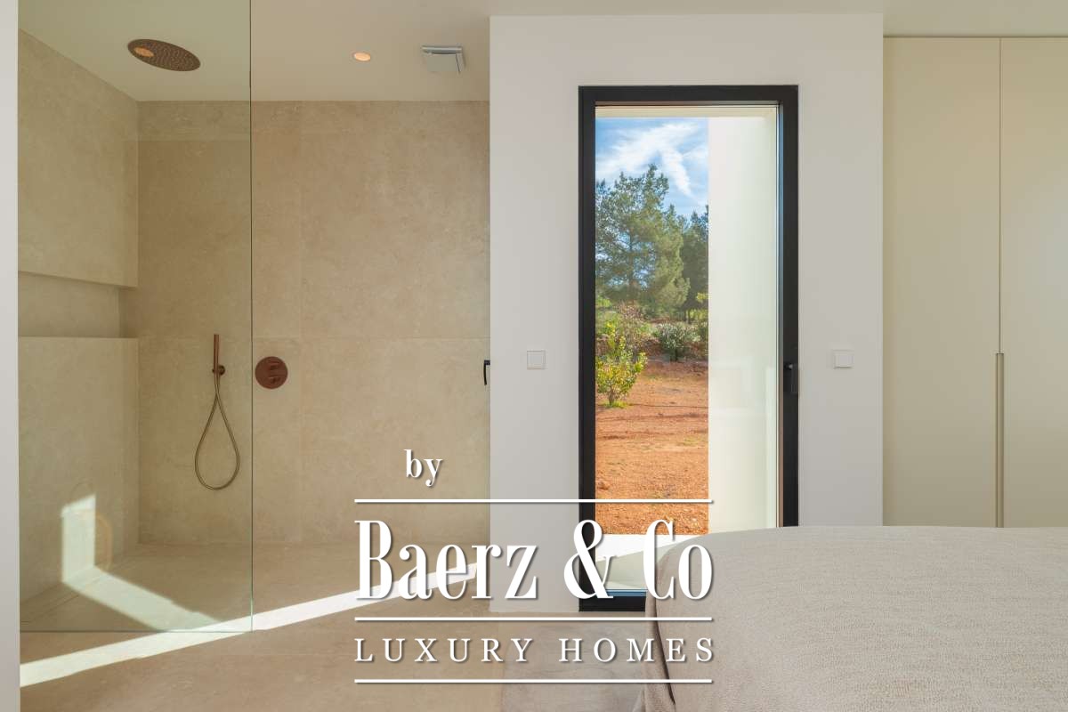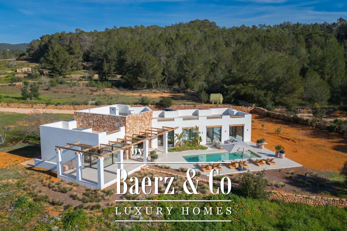 De omgevingDit eigendom bevindt zich in het weelderige landschap van Ibiza, in de buurt van Santa Gertrudis, en is gelegen op een groot perceel van 23.000 m2. Rondom het landgoed treft u olijfboomgaarden, sinaasappelbomen, pijnbomen en de typische stenen muurtjes aan. Deze Finca ligt op slechts 5 minuten afstand van het levendige dorp Santa Gertrudis en op 4 minuten afstand van de prestigieuze internationale school Morna, wat ideaal is voor gezinnen met kinderen. Bovendien ligt Ibiza-stad op slechts 15 minuten afstand en de luchthaven op 20 minuten, waardoor reizen eenvoudig en comfortabel is. Ibiza Estates Development is met trots gestart aan de bouw van deze spectaculaire landelijke villa.De villaDeze nieuwgebouwde villa in Ibiza is het toonbeeld van moderne architectuur en eco-vriendelijk design. De begane grond verwelkomt u met een ruime hal van circa 26 m², die leidt naar drie prachtig ontworpen slaapkamers, elk met hun eigen unieke karakter. De eerste slaapkamer, van 20 m², en de tweede, van 22 m², beschikken beide over een eigen badkamer met douche, wastafel en toilet. De masterbedroom, een royale ruimte van ongeveer 30 m², biedt een luxe badkamer met dubbele wastafels, een stijlvolle douche, toilet en een vrijstaand bad. Dat maakt het de ultieme oase van rust en privacy. De begane grond herbergt tevens een ruime woonkamer van circa 50 m² die naadloos overgaat in een royale keuken van ongeveer 40 m². De woonkamer, verfraaid met een grote vide van 5 m² en een elegante doorkijk-open haard die de ruimte met de keuken verbindt, grenst direct aan een veranda met een betoverend uitzicht op het zwembad. Dit open en vloeiende ontwerp combineert de perfecte balans tussen binnen en buiten, waardoor de natuurlijke schoonheid van Ibiza uw dagelijks leven binnenstroomt. Een ruime open trap leidt naar de kelderverdieping, een toevoeging die zowel functioneel als esthetisch aantrekkelijk is. De kelderverdieping, met een extra woonlaag van in totaal 165 m², biedt een schat aan mogelijkheden. Het omvat twee technische ruimtes waarvan de grote van buitenaf toegankelijk is – ideaal voor onderhoudswerkzaamheden – en een overige ruimte van 83 m² die naar eigen smaak kan worden ingericht met faciliteiten zoals een sauna, bioscoop of gym. Ook biedt de kelder de mogelijkheid voor een guesthouse of nanny kamer van circa 27 m² met een aparte toegang vanaf de buitenzijde, wat extra flexibiliteit en privacy biedt. Deze villa combineert de allernieuwste ontwerpelementen met een milieuvriendelijke aanpak, waardoor het een ideale keuze is voor degenen die zowel luxe als duurzaamheid waarderen.De buitenruimtesDe prachtig aangelegde tuinen zijn elegant verlicht en ontworpen met het oog op minimaal onderhoud. Op het perceel kan in de toekomst nog een extra gastenverblijf van 30m2 worden gebouwd. Op het binnenplein staan twee charmante originele Ibicenco-structuren. Dit alles vormt een zeer uitzonderlijk eigendom, dat wordt gerealiseerd volgens de hoogste kwaliteitsstandaard en zich op een werkelijk unieke locatie bevindt.