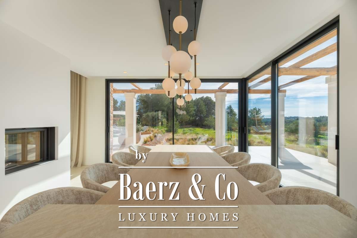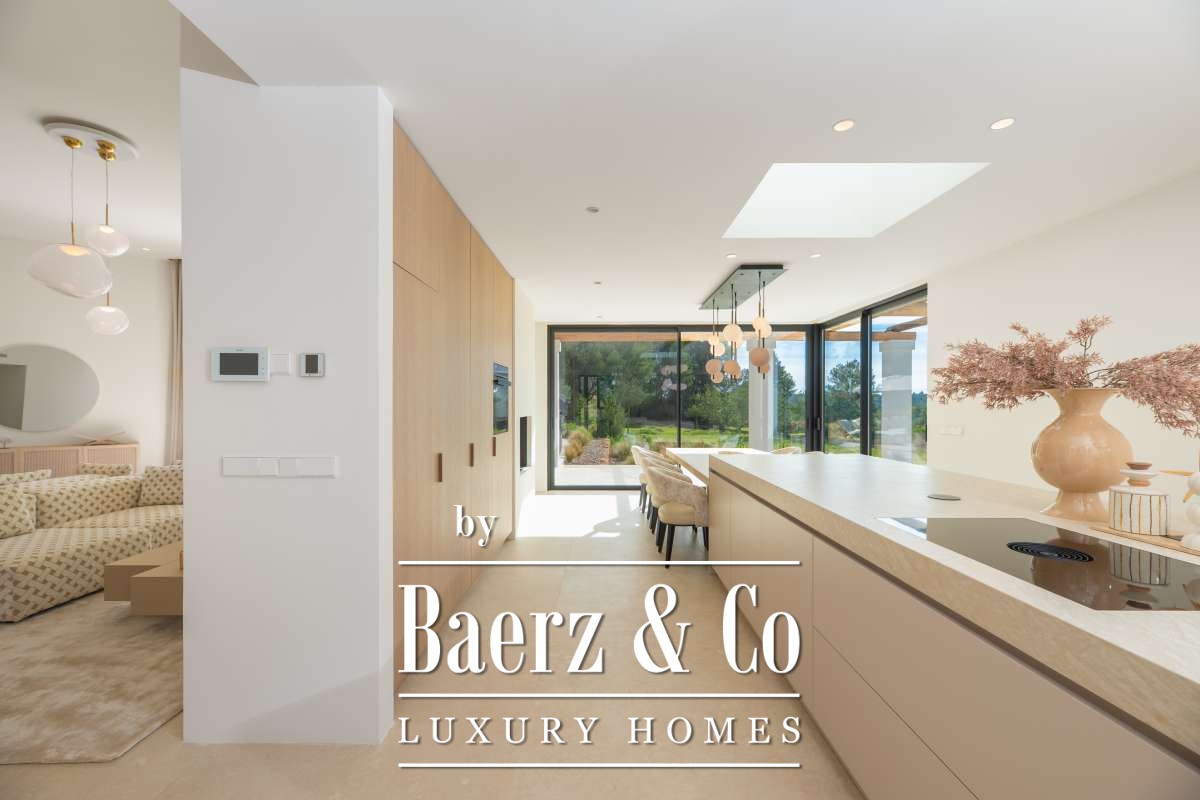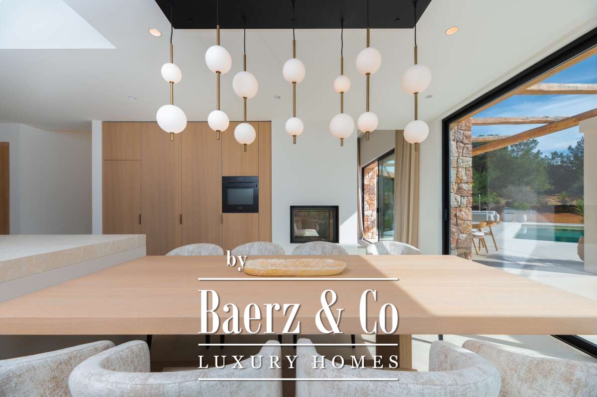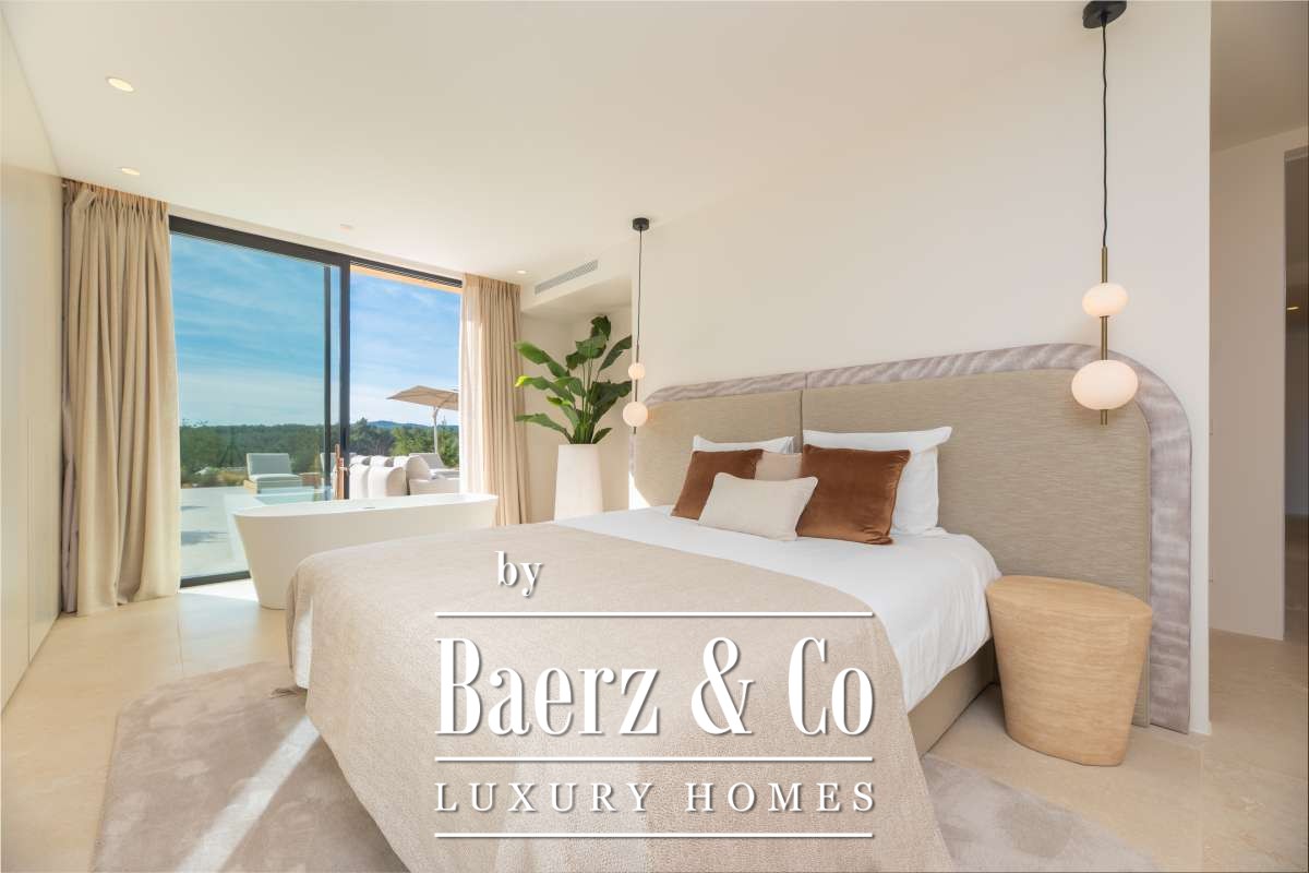 De omgevingDit eigendom bevindt zich in het weelderige landschap van Ibiza, in de buurt van Santa Gertrudis, en is gelegen op een groot perceel van 23.000 m2. Rondom het landgoed treft u olijfboomgaarden, sinaasappelbomen, pijnbomen en de typische stenen muurtjes aan. Deze Finca ligt op slechts 5 minuten afstand van het levendige dorp Santa Gertrudis en op 4 minuten afstand van de prestigieuze internationale school Morna, wat ideaal is voor gezinnen met kinderen. Bovendien ligt Ibiza-stad op slechts 15 minuten afstand en de luchthaven op 20 minuten, waardoor reizen eenvoudig en comfortabel is. Ibiza Estates Development is met trots gestart aan de bouw van deze spectaculaire landelijke villa.De villaDeze nieuwgebouwde villa in Ibiza is het toonbeeld van moderne architectuur en eco-vriendelijk design. De begane grond verwelkomt u met een ruime hal van circa 26 m², die leidt naar drie prachtig ontworpen slaapkamers, elk met hun eigen unieke karakter. De eerste slaapkamer, van 20 m², en de tweede, van 22 m², beschikken beide over een eigen badkamer met douche, wastafel en toilet. De masterbedroom, een royale ruimte van ongeveer 30 m², biedt een luxe badkamer met dubbele wastafels, een stijlvolle douche, toilet en een vrijstaand bad. Dat maakt het de ultieme oase van rust en privacy. De begane grond herbergt tevens een ruime woonkamer van circa 50 m² die naadloos overgaat in een royale keuken van ongeveer 40 m². De woonkamer, verfraaid met een grote vide van 5 m² en een elegante doorkijk-open haard die de ruimte met de keuken verbindt, grenst direct aan een veranda met een betoverend uitzicht op het zwembad. Dit open en vloeiende ontwerp combineert de perfecte balans tussen binnen en buiten, waardoor de natuurlijke schoonheid van Ibiza uw dagelijks leven binnenstroomt. Een ruime open trap leidt naar de kelderverdieping, een toevoeging die zowel functioneel als esthetisch aantrekkelijk is. De kelderverdieping, met een extra woonlaag van in totaal 165 m², biedt een schat aan mogelijkheden. Het omvat twee technische ruimtes waarvan de grote van buitenaf toegankelijk is – ideaal voor onderhoudswerkzaamheden – en een overige ruimte van 83 m² die naar eigen smaak kan worden ingericht met faciliteiten zoals een sauna, bioscoop of gym. Ook biedt de kelder de mogelijkheid voor een guesthouse of nanny kamer van circa 27 m² met een aparte toegang vanaf de buitenzijde, wat extra flexibiliteit en privacy biedt. Deze villa combineert de allernieuwste ontwerpelementen met een milieuvriendelijke aanpak, waardoor het een ideale keuze is voor degenen die zowel luxe als duurzaamheid waarderen.De buitenruimtesDe prachtig aangelegde tuinen zijn elegant verlicht en ontworpen met het oog op minimaal onderhoud. Op het perceel kan in de toekomst nog een extra gastenverblijf van 30m2 worden gebouwd. Op het binnenplein staan twee charmante originele Ibicenco-structuren. Dit alles vormt een zeer uitzonderlijk eigendom, dat wordt gerealiseerd volgens de hoogste kwaliteitsstandaard en zich op een werkelijk unieke locatie bevindt.