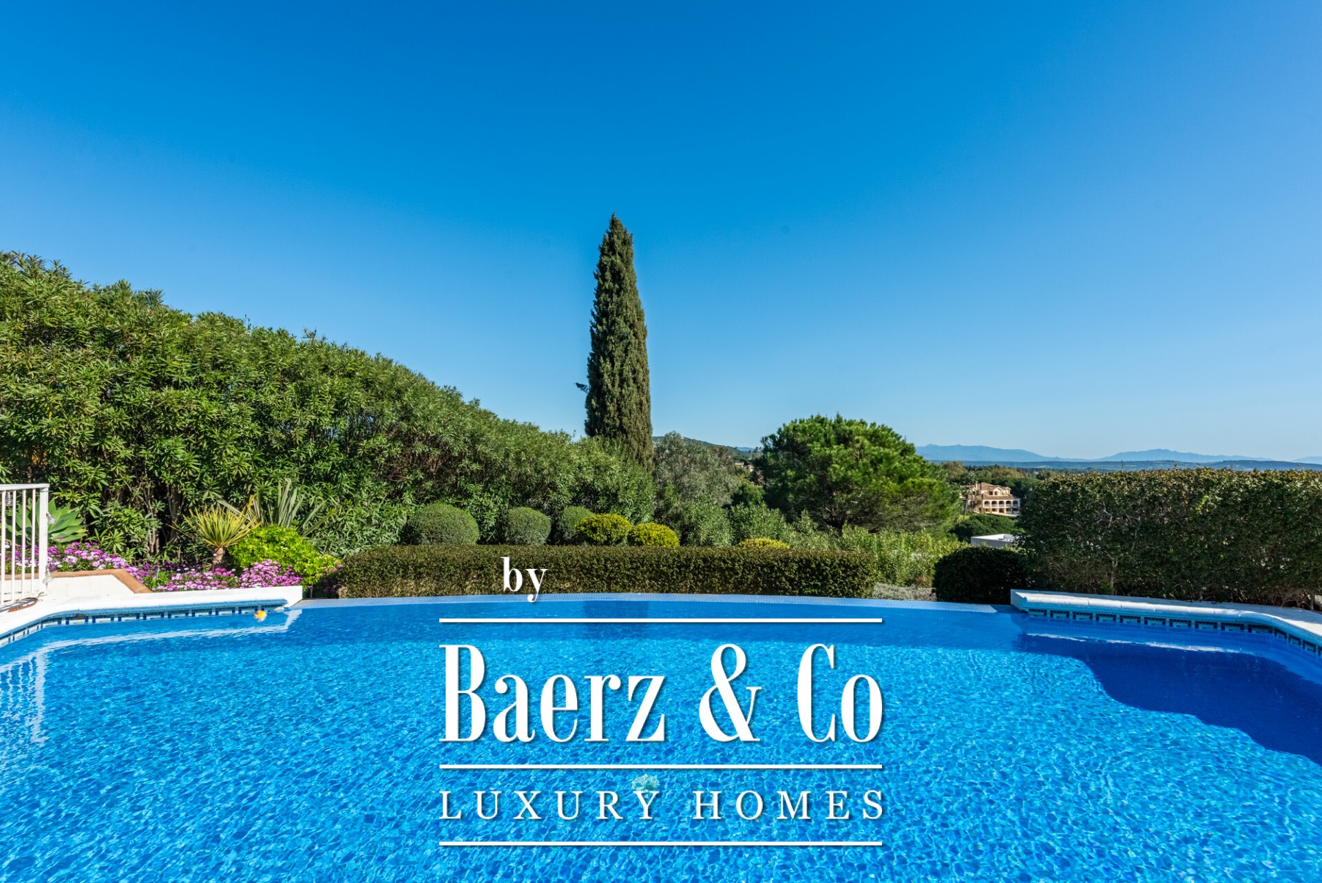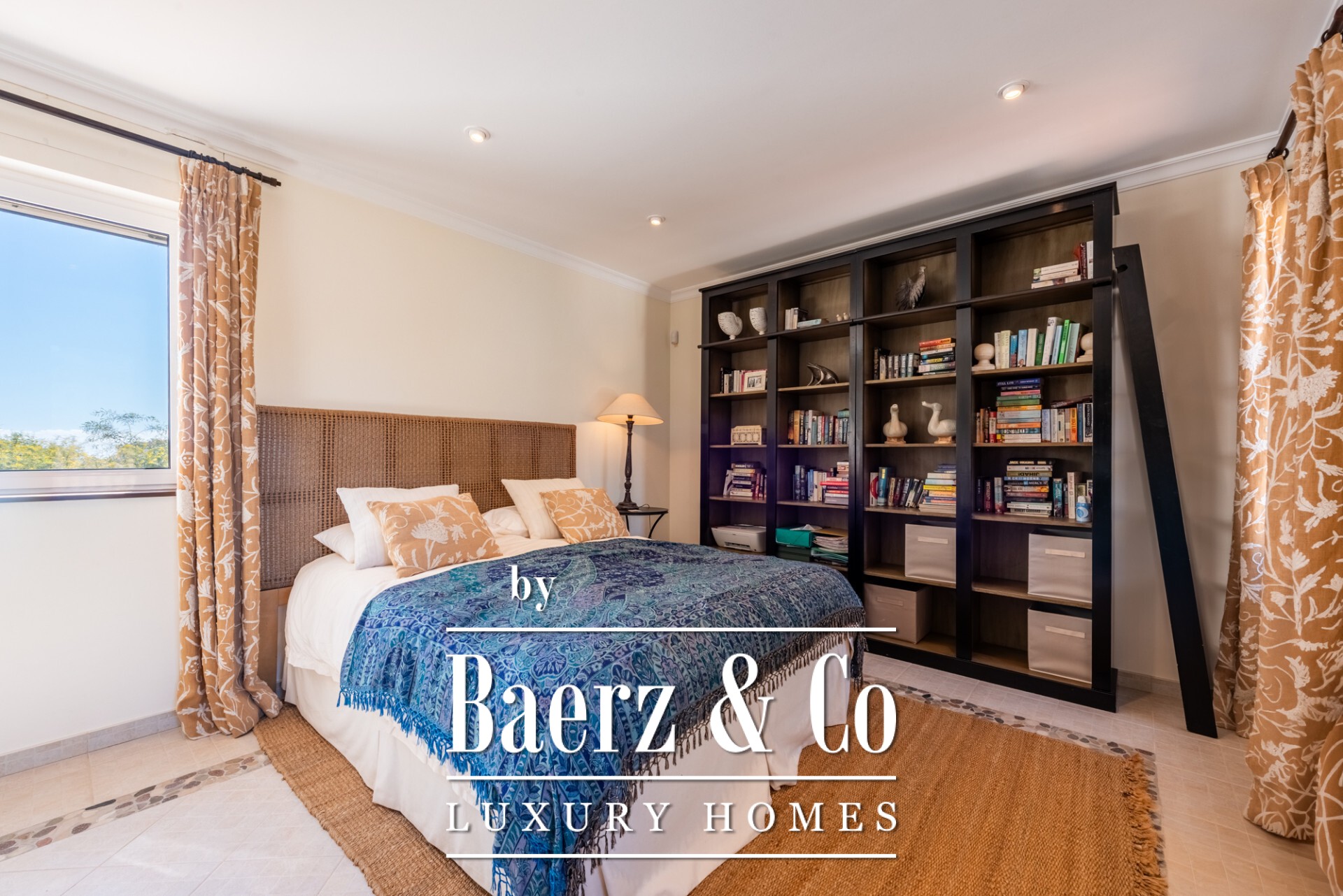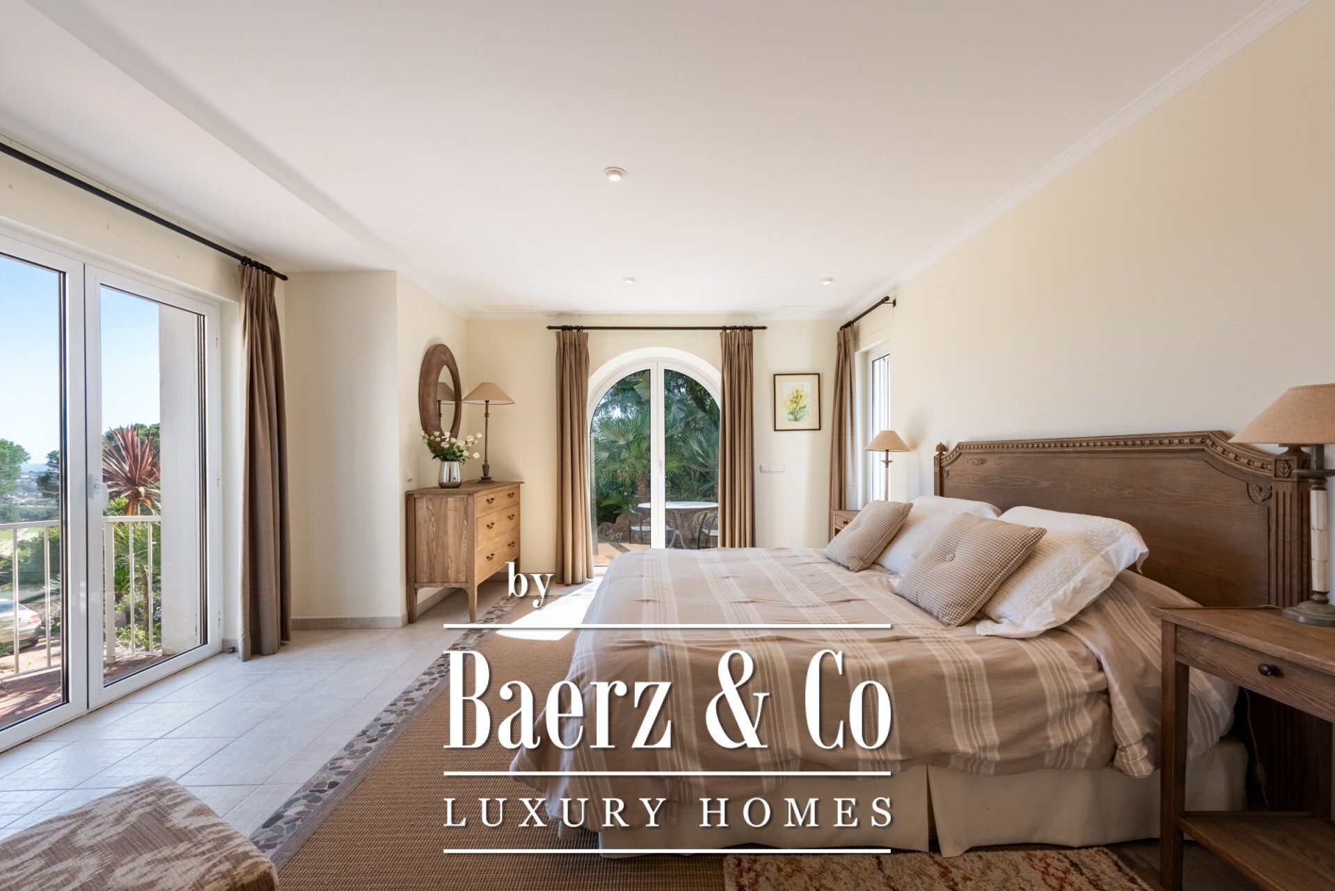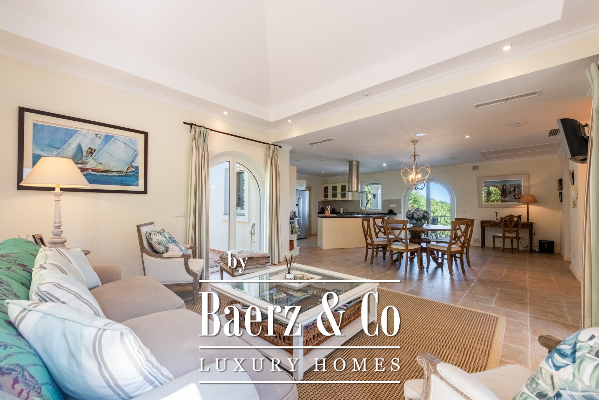 Bij binnenkomst wordt u verwelkomd in een ruime hal die toegang geeft tot een royale woonkamer met open haard, een verfijnde eetkamer en een grote open keuken met directe toegang tot de terrassen en het zwembad. Elk vertrek is zorgvuldig gepositioneerd om optimaal van het uitzicht en het natuurlijke licht te genieten. Een paar treden leiden naar het privé slaapgedeelte met vier comfortabele slaapkamers, elk met een eigen badkamer.