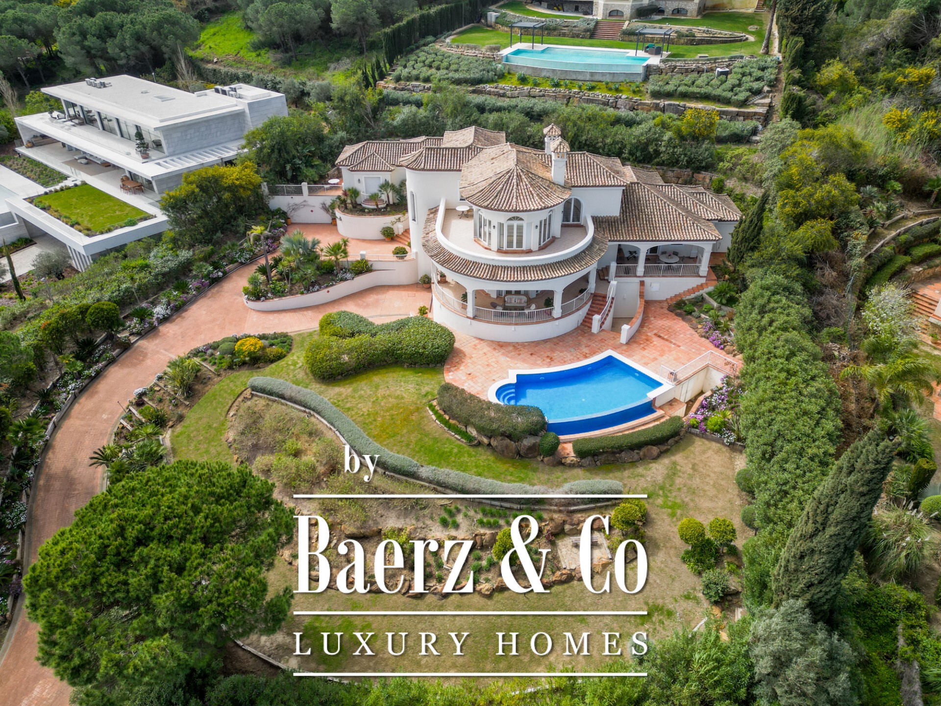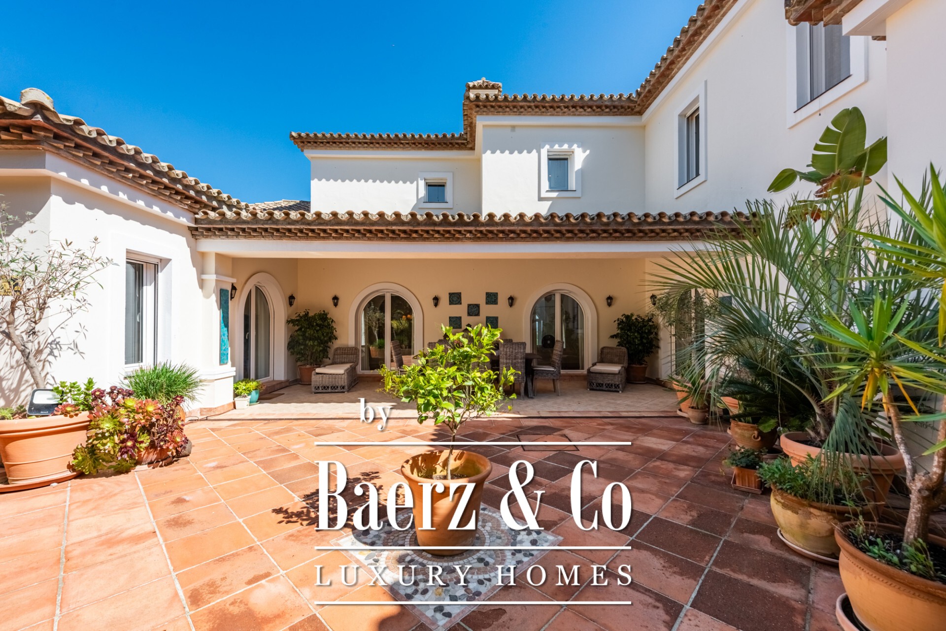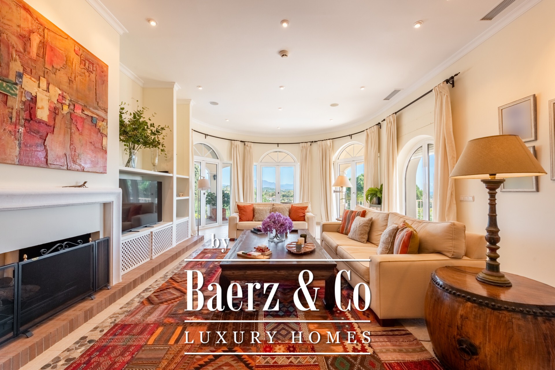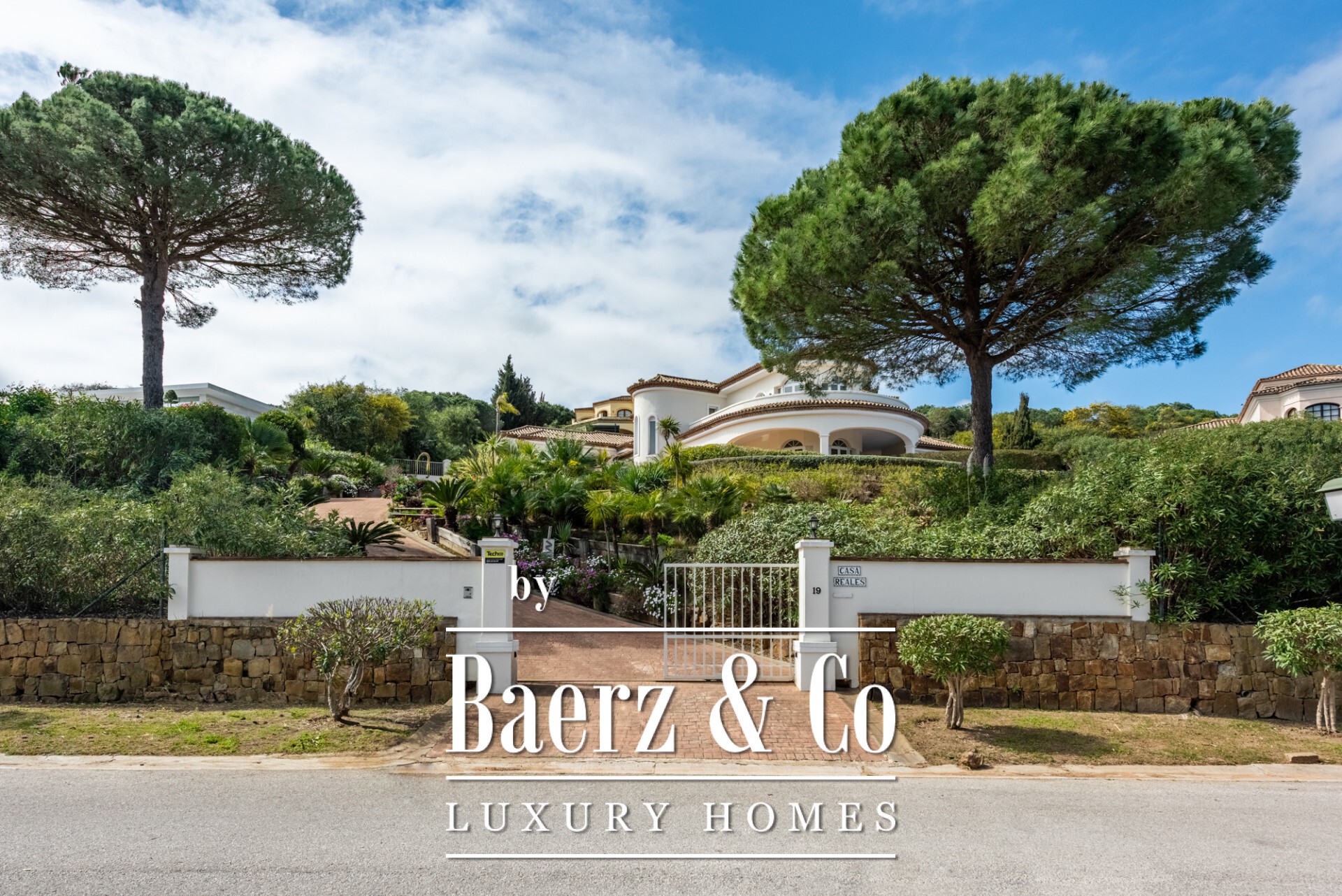 De klassieke villa in Sotogrande verenigt tijdloze elegantie met een bijzonder panoramisch uitzicht. Gelegen op een verhoogd perceel van 2.960 m² met een woonoppervlakte van 820 m², geniet deze woning van een weids uitzicht over Sotogrande, de Middellandse Zee en de bergen van de Sierra Bermeja. De omgeving omvat weelderige privé-tuinen, een uitnodigend zwembad en een unieke gevoel van geborgenheid dankzij de ligging in een beveiligde residentie, nabij het SO/ Sotogrande Spa & Golf Resort.