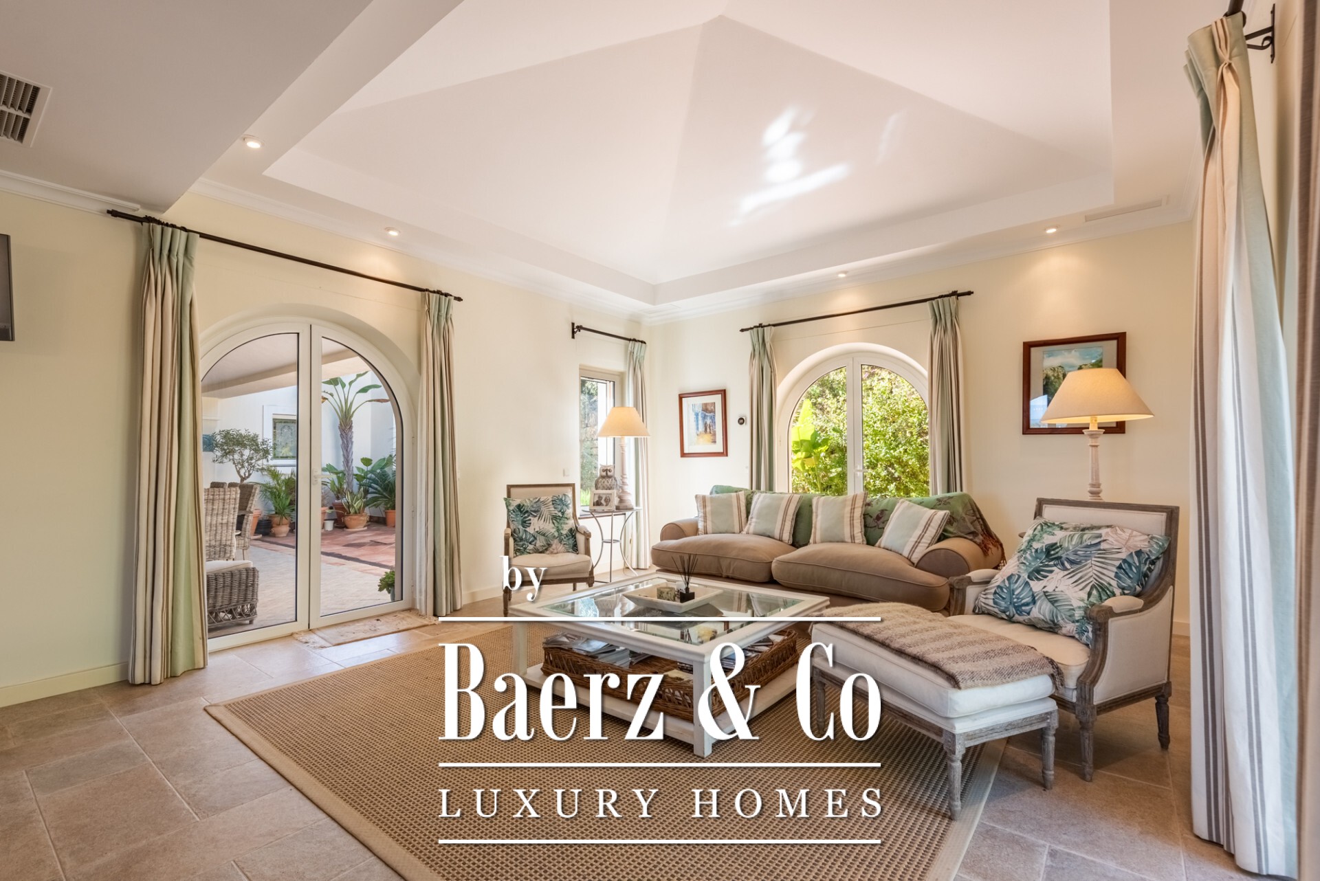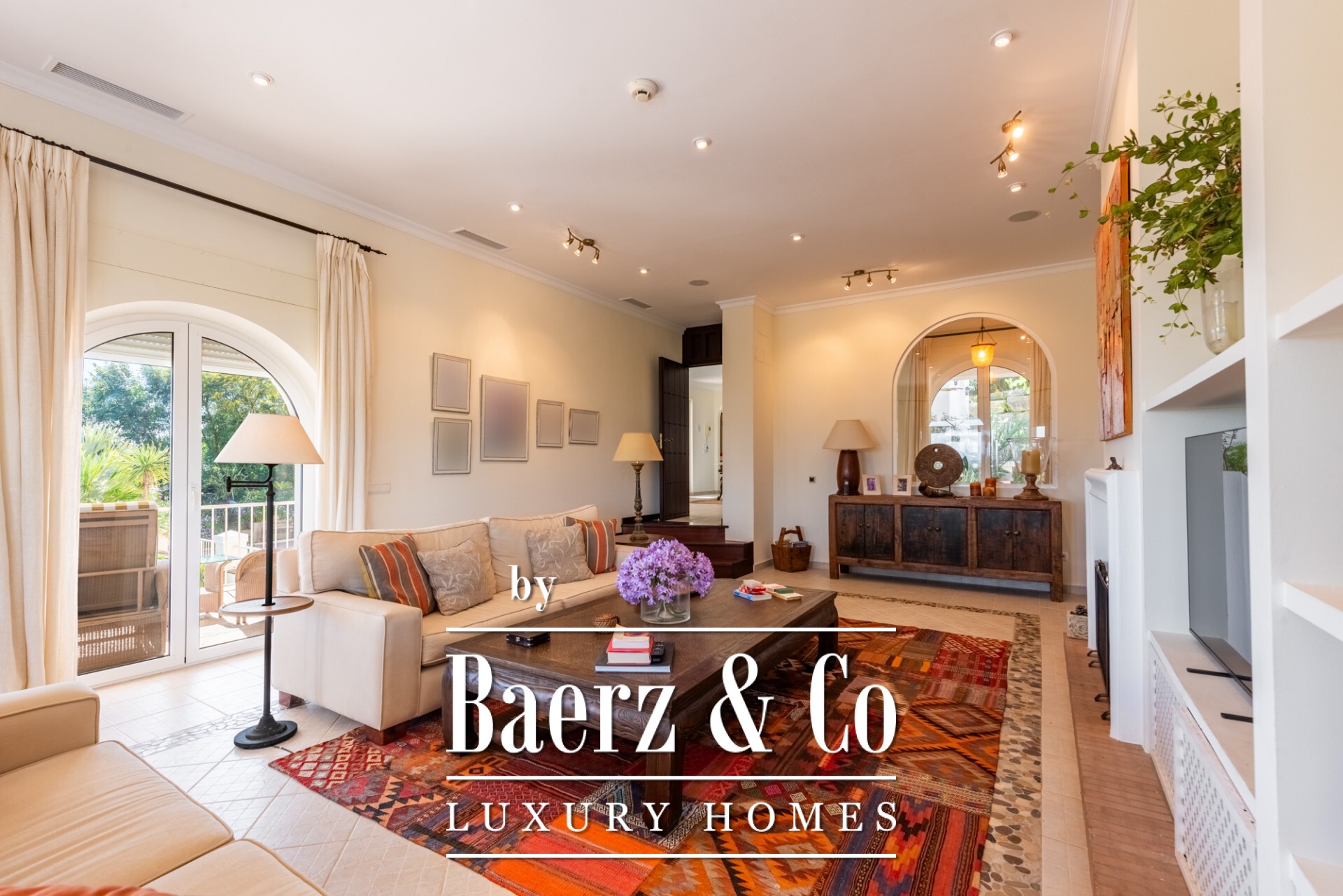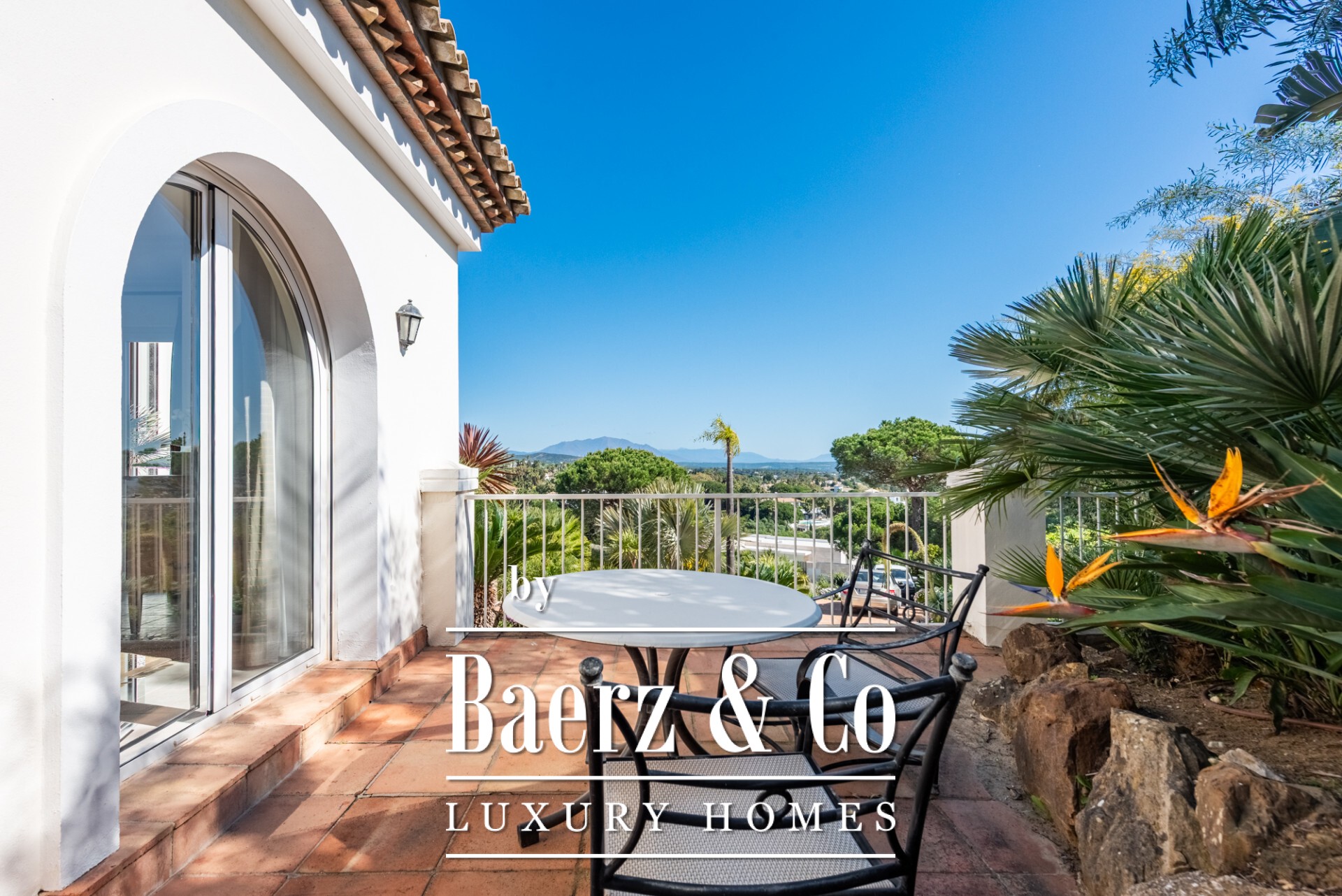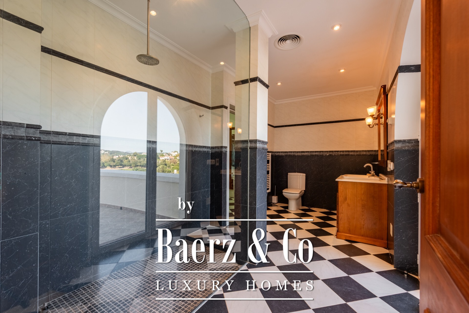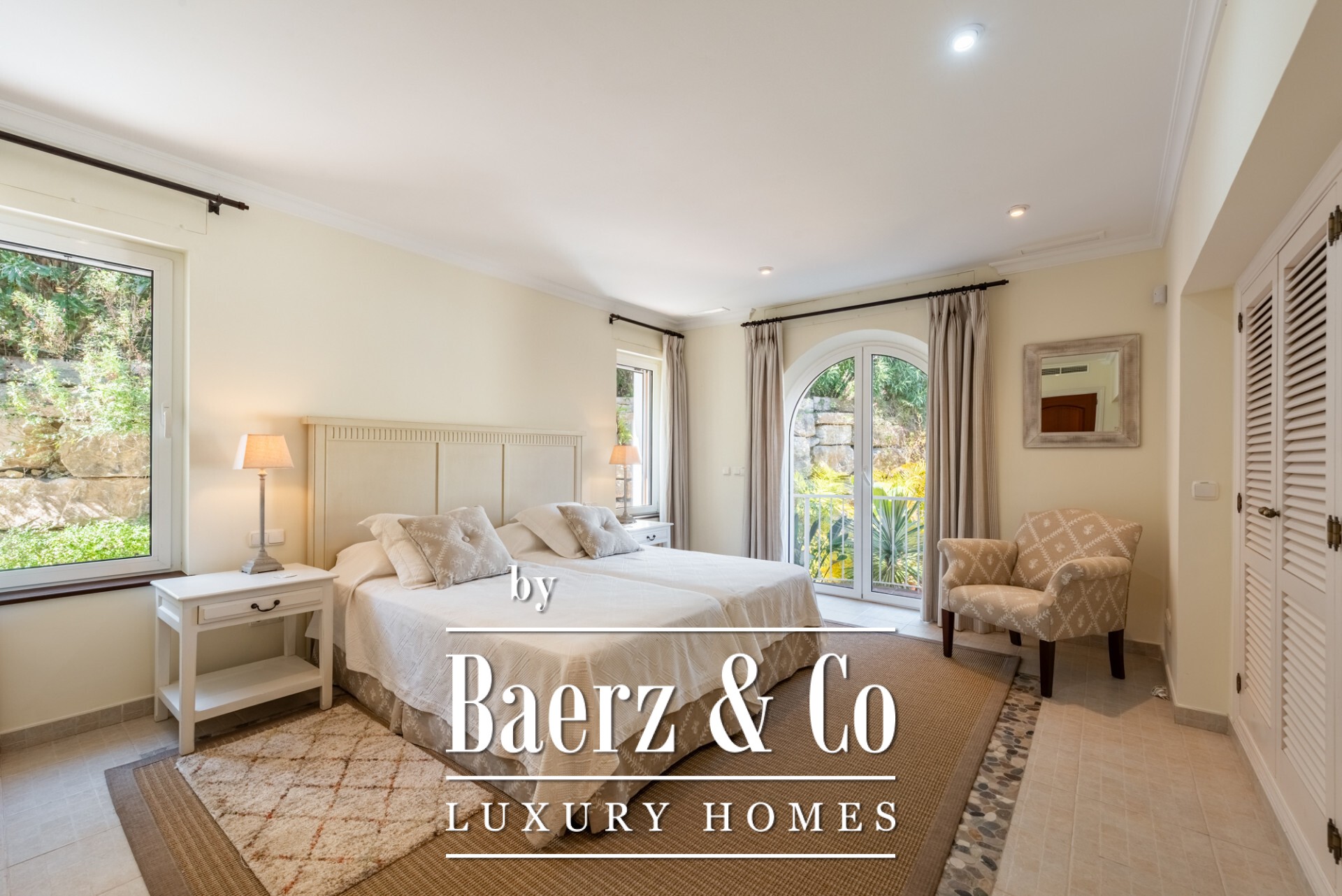 De klassieke villa in Sotogrande verenigt tijdloze elegantie met een bijzonder panoramisch uitzicht. Gelegen op een verhoogd perceel van 2.960 m² met een woonoppervlakte van 820 m², geniet deze woning van een weids uitzicht over Sotogrande, de Middellandse Zee en de bergen van de Sierra Bermeja. De omgeving omvat weelderige privé-tuinen, een uitnodigend zwembad en een unieke gevoel van geborgenheid dankzij de ligging in een beveiligde residentie, nabij het SO/ Sotogrande Spa & Golf Resort.