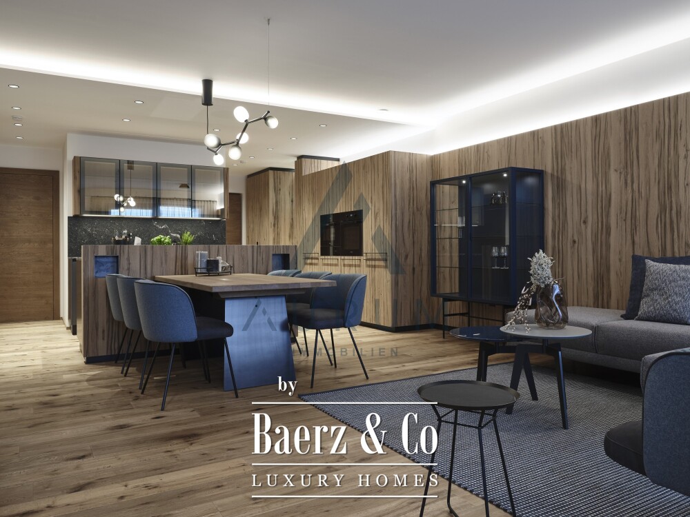 Het tuinappartement in St. Johann in Tirol biedt een verfijnde woonervaring voor wie understated luxe en adembenemende bergpanorama’s waardeert. Bij binnenkomst wordt u begroet door een doordacht ingedeelde plattegrond die privacy en openheid in balans brengt, met een royale woon- en eetkamer als centraal hart van het huis. De ruimte sluit naadloos aan op een zonovergoten terras en een privé-tuin met karakteristiek uitzicht op het Wilder Kaiser-gebergte. De open keuken, voorzien van Miele apparatuur, draagt bij aan de elegante sfeer en vloeit moeiteloos over in het hoogwaardig afgewerkte interieur, inclusief op maat gemaakt Aufschnaiter meubilair.