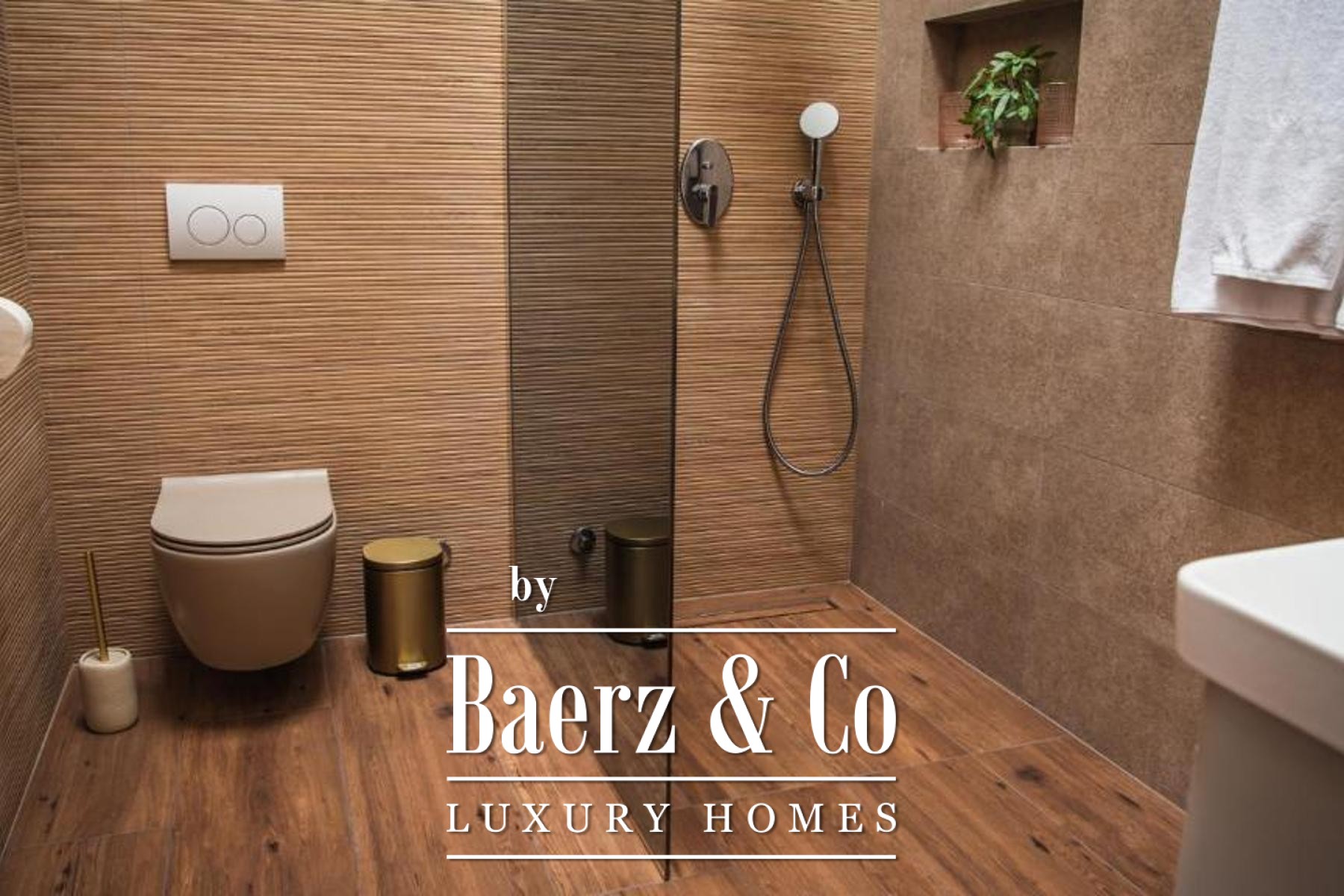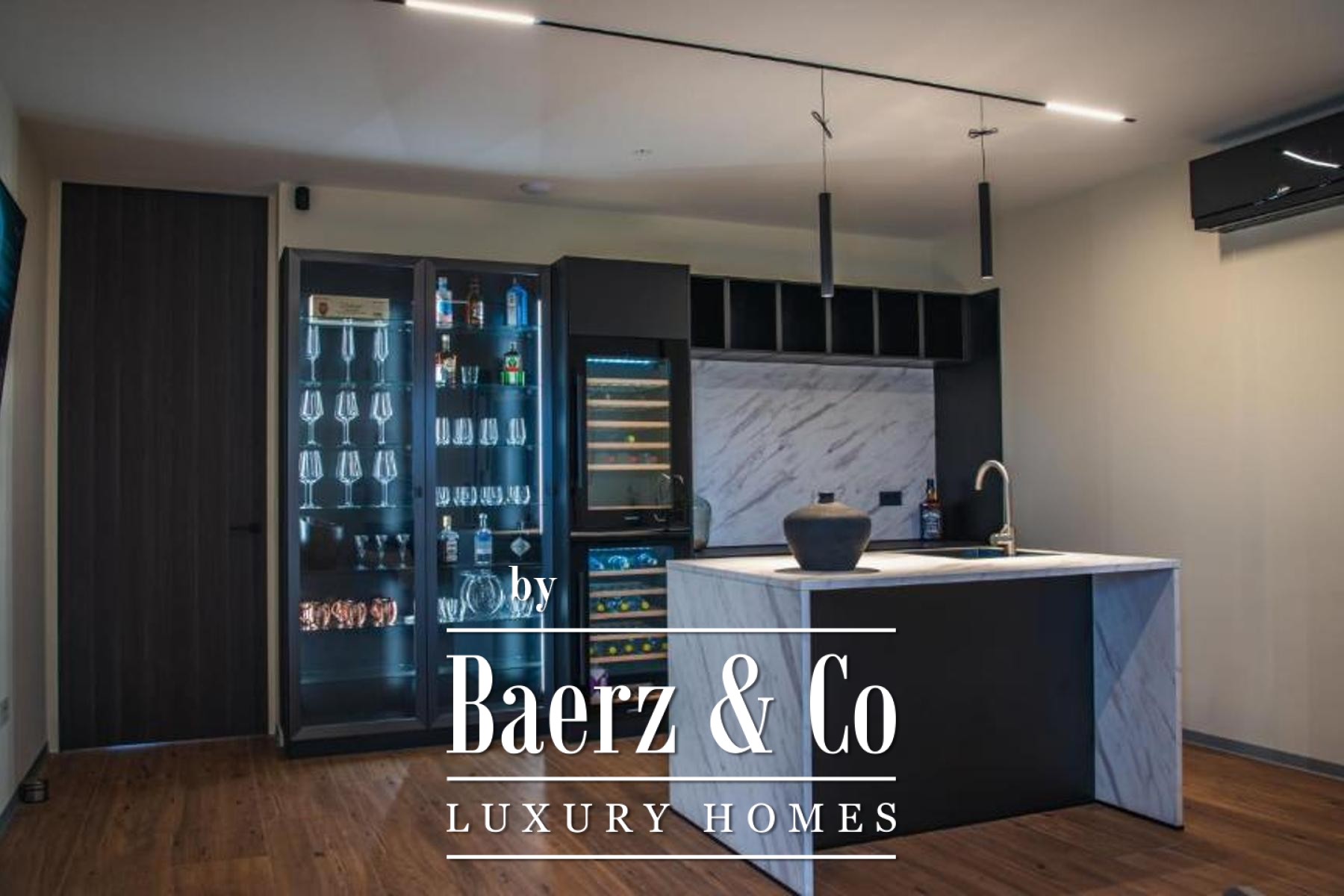 De open indeling integreert een op maat gemaakte keuken, een stijlvolle woonkamer en een eetgedeelte met royale terrassen en rustige buitenruimtes. Vier ruime slaapkamers beschikken elk over een eigen badkamer; de master suite grenst aan een privébalkon met uitzicht op de bergen. Een aparte massageruimte, een intieme wijnkelder en twee handige bergingen voegen functionaliteit en ingetogen luxe toe.