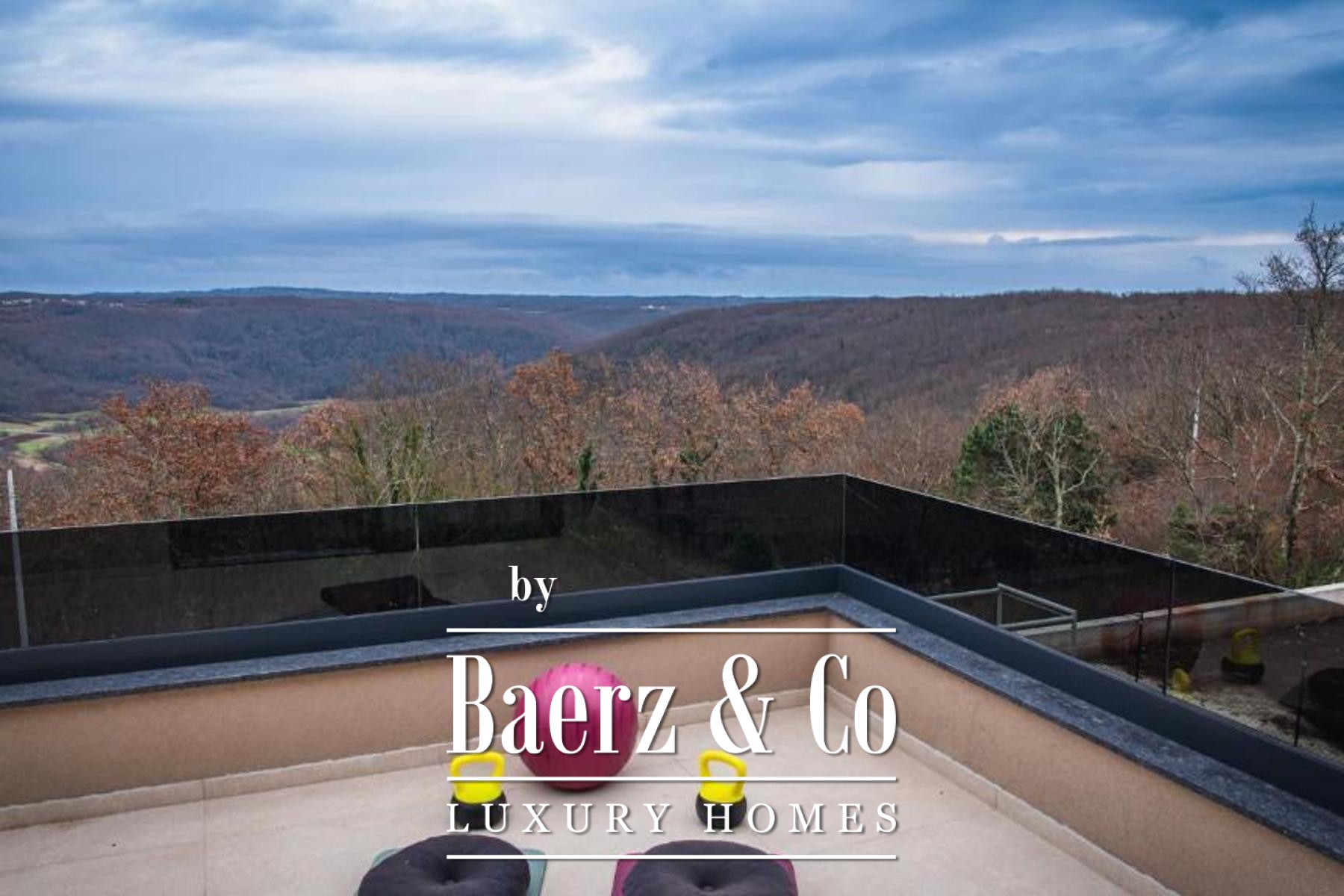 Luxe villa Tinjan biedt een zeldzame combinatie van privacy, elegantie en panoramisch uitzicht in het hart van Centraal-Istrië. Deze moderne woning ligt op een fraai aangelegd perceel van 781 m², waar grote glazen wanden het daglicht door de 370 m² woonoppervlakte laten stromen en het adembenemende uitzicht op de berg Učka het interieur met de buitenwereld verbindt.