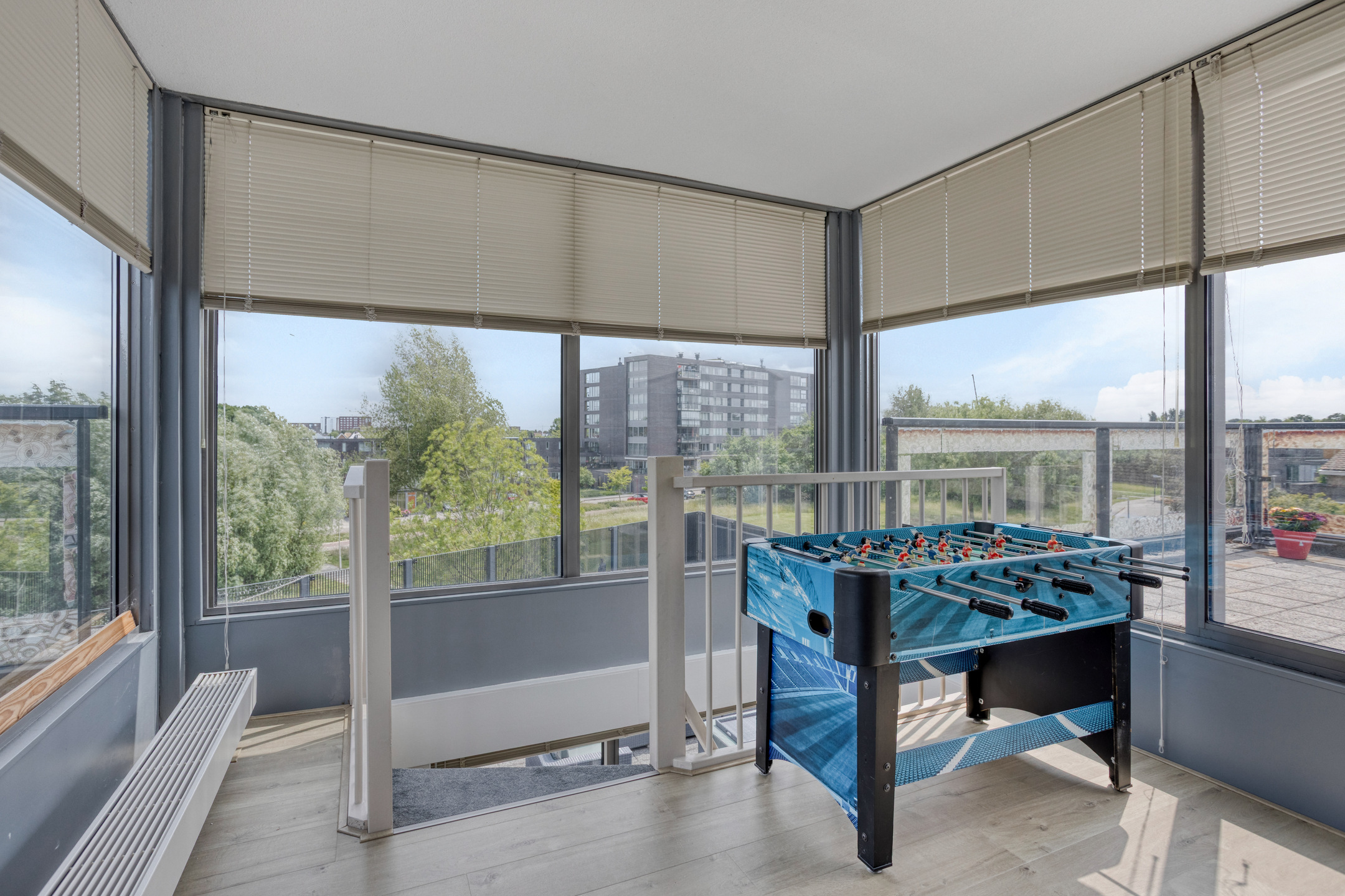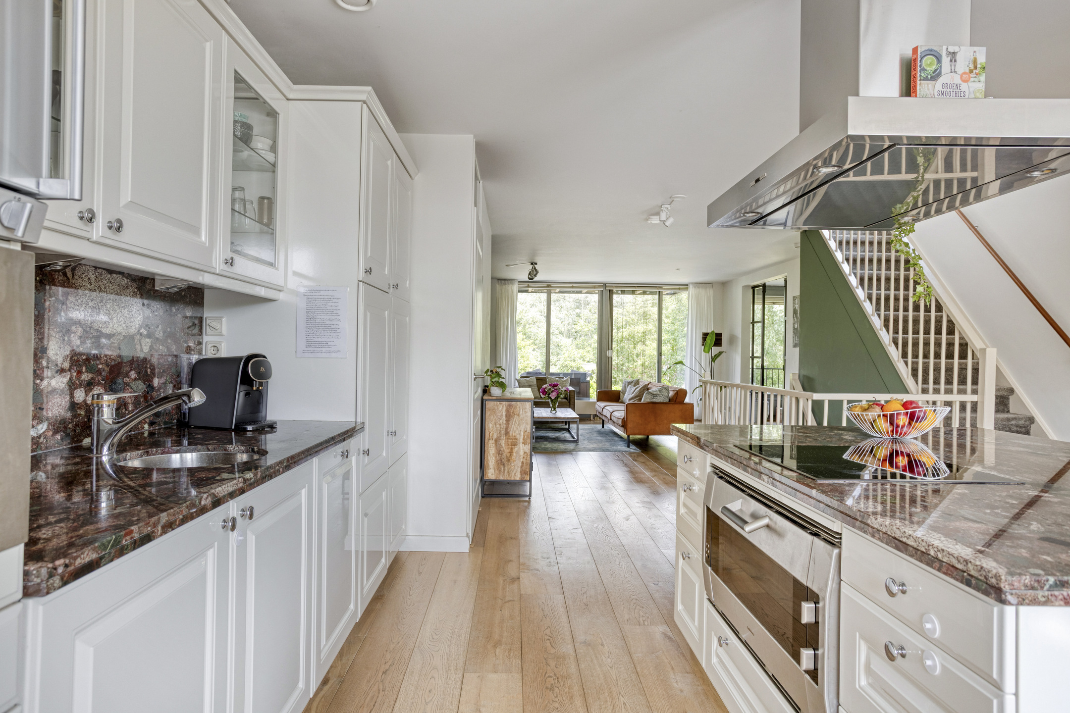 De woonruimtes zijn royaal opgezet en licht door de grote raampartijen. Elke woning heeft een eigen woonkamer met uitzicht op het groen rondom het huis. De keukens zijn praktisch ingericht en sluiten goed aan op de leefruimtes. In totaal zijn er drie moderne badkamers aanwezig, en door de verdeling over vier woonlagen is er altijd een rustige plek te vinden. De slaapkamers zijn verdeeld over alle verdiepingen, met ruimte voor grote bedden, bureaus en kasten. De huidige bewoners hebben de woning keurig onderhouden; de afwerking is strak en eigentijds. Dankzij HR++ beglazing, aluminium kozijnen, dak-, muur- en vloerisolatie, en 12 zonnepanelen is dit huis ook nog eens energiezuinig (energielabel A).