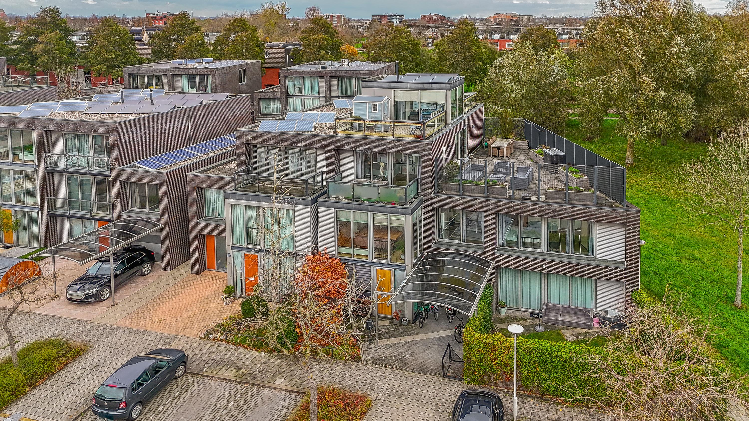 De buitenruimte is al net zo indrukwekkend: in totaal 168 m2 aan buitenruimte verdeeld over een ruime voortuin, achtertuin, 3 balkons en 3 dakterrassen. Hierdoor heb je altijd een plek in de zon én privacy. Op eigen terrein is ruimte om te parkeren onder de carport en er is zelfs een eigen laadpaal aanwezig. De ligging in een groene, rustige wijk van Zoetermeer maakt het woongenot compleet. Vanuit de woonkamer kijk je vrij uit over een groenstrook en volwassen bomen – een zeldzame combinatie van ruimte, privacy en natuur binnen handbereik.